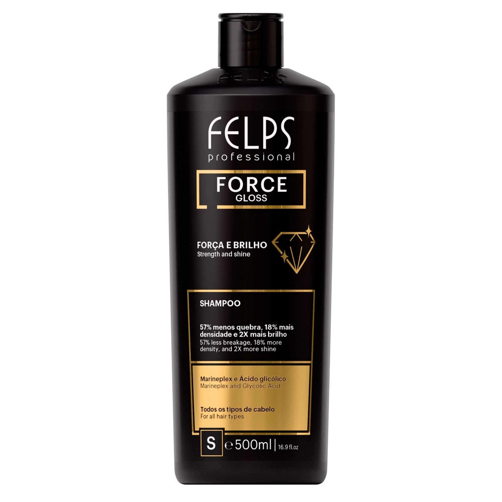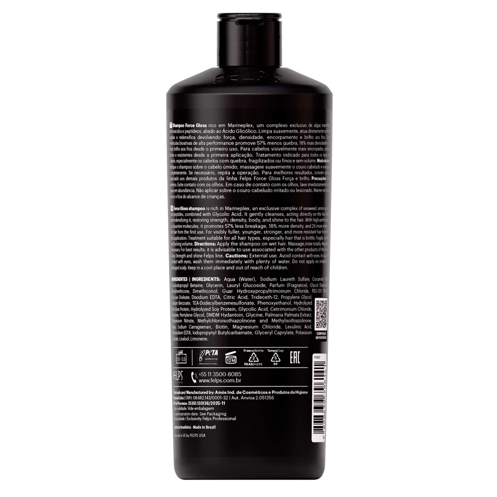 Shampoo Force Gloss rico em Marineplex, um complexo exclusivo de algas marinhas, aminoácidos e peptídeos, aliado ao Ácido Glicólico. Limpa suavemente, atua diretamente na fibra capilar e redensifica devolvendo força, densidade, encorpamento e brilho aos fios. Com moléculas bioativas de alta performance promove 57% menos quebra, 18% mais densidade e 2X mais brilho aos fios desde o primeiro uso. Para cabelos visivelmente mais encorpados, jovens, fortes e resistentes desde a primeira aplicação. Tratamento indicado para todos os tipos de cabelo, especialmente os cabelos com quebra, fragilizados ou finos e sem volume.