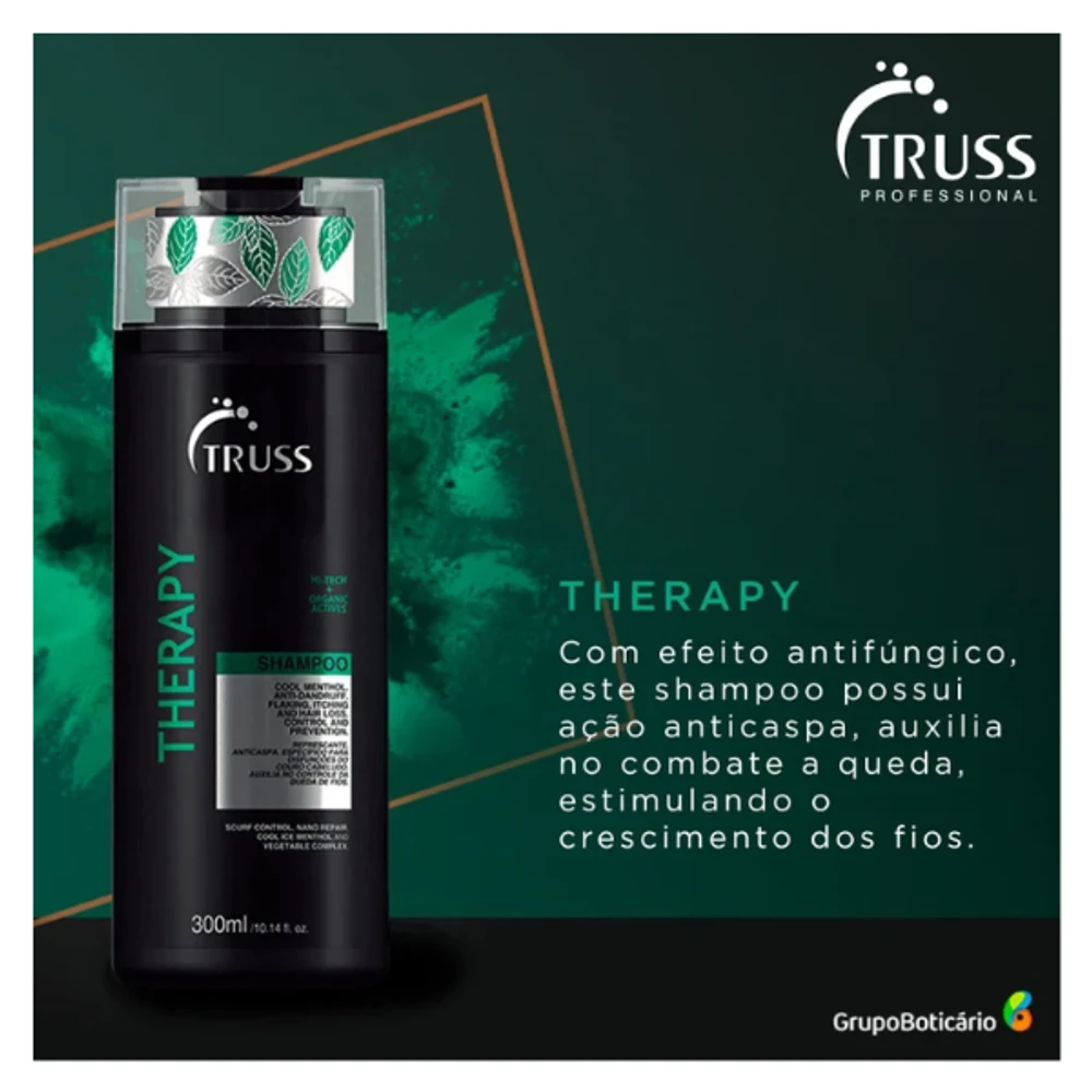 Revitalize seus cabelos e couro cabeludo com o Shampoo Truss Therapy. Desenvolvido com uma fórmula avançada, este shampoo terapêutico é ideal para tratar e prevenir problemas capilares, proporcionando um cuidado profundo e resultados visíveis.
