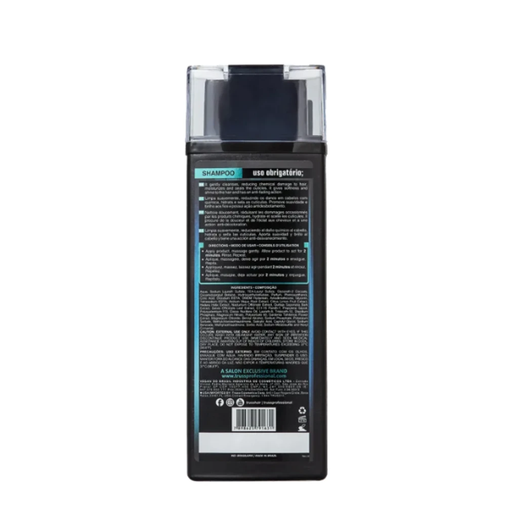 Reparação Profunda e Controle da Oleosidade: Com uma fórmula poderosa, o shampoo TRUSS USO OBRIGATÓRIO limpa suavemente os fios, ao mesmo tempo em que repara danos e mantém a oleosidade controlada.