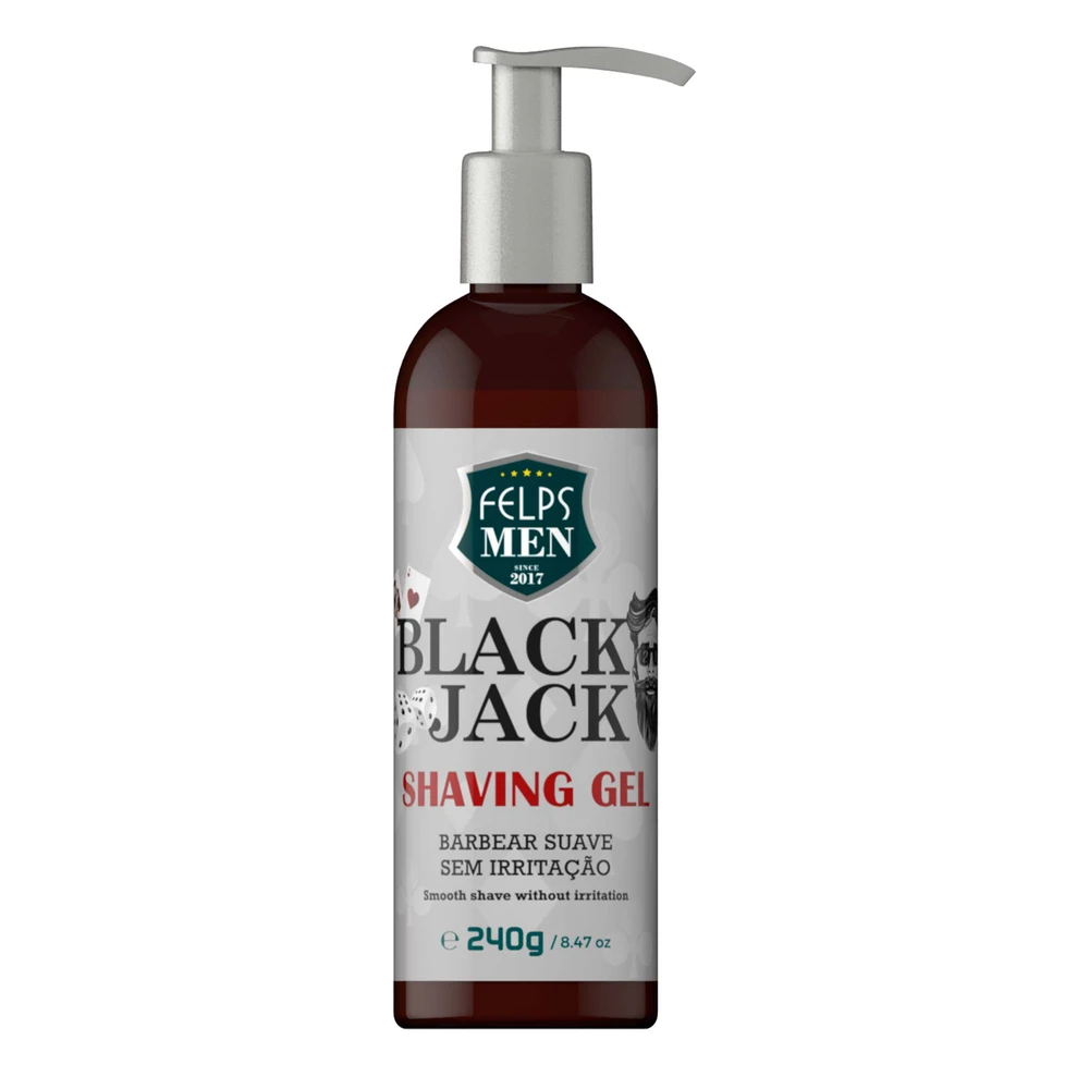 Felps Men Black Jack Shaving Gel para barbear suave e sem irritação, acabamento perfeito e preciso, contém D´Pantenol que hidrata e acalma a pele.