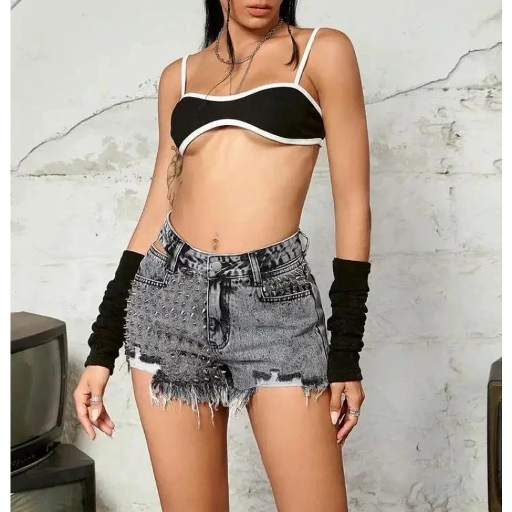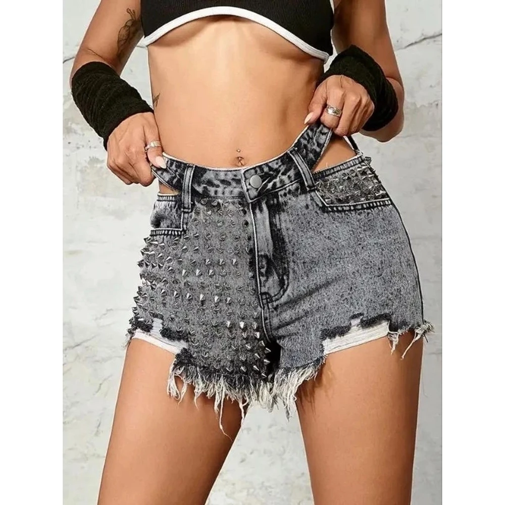 Short Jeans Curto Despojado Spikes Gótico Sensual Tendência Moda Blogueira Fashion Principais Características: - Confortável, flexível e se ajusta no corpo. - Acabamento e costura de alta qualidade. - Super sensual, alta tendência da moda.
