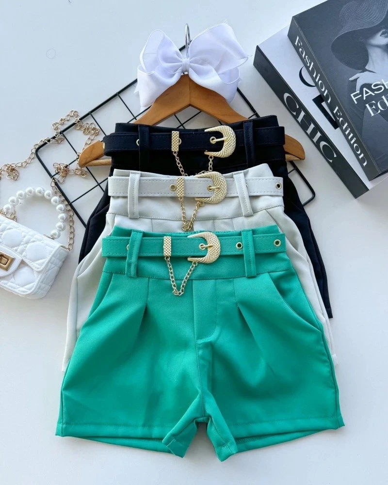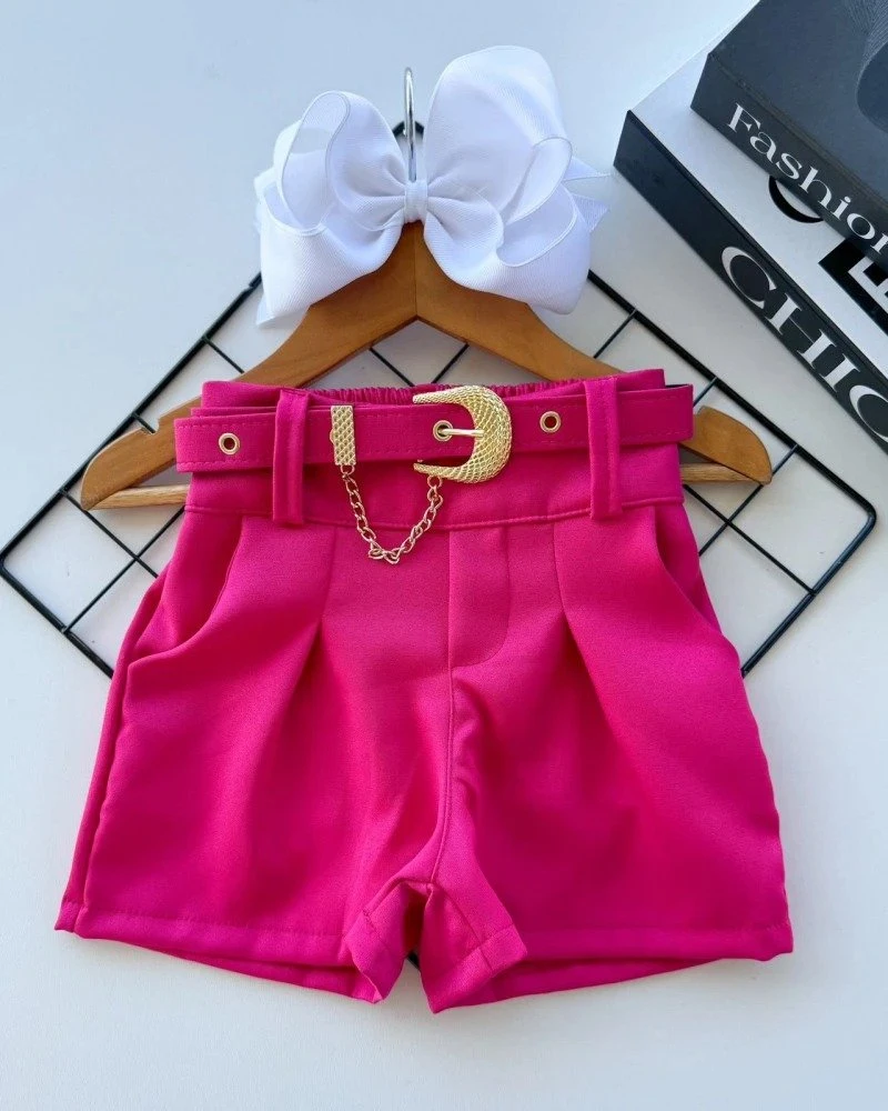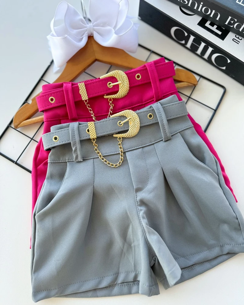 Garanta já o Shortinho Menina Estilo Alfaiataria com Cinto e deixe sua princesa ainda mais linda e estilosa!