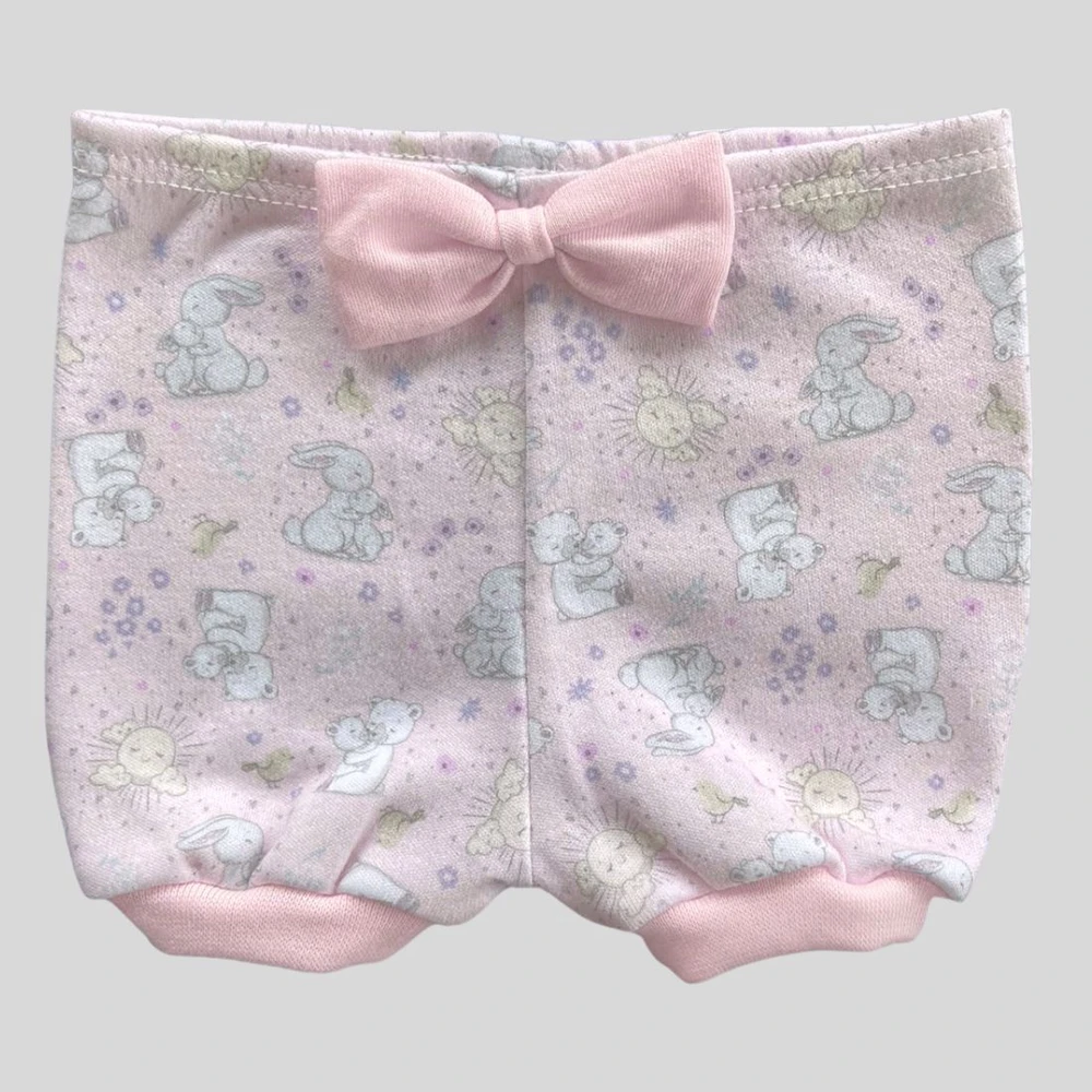 Shorts para bebê prematuro em suedine algodão egípcio Coelho Rosa