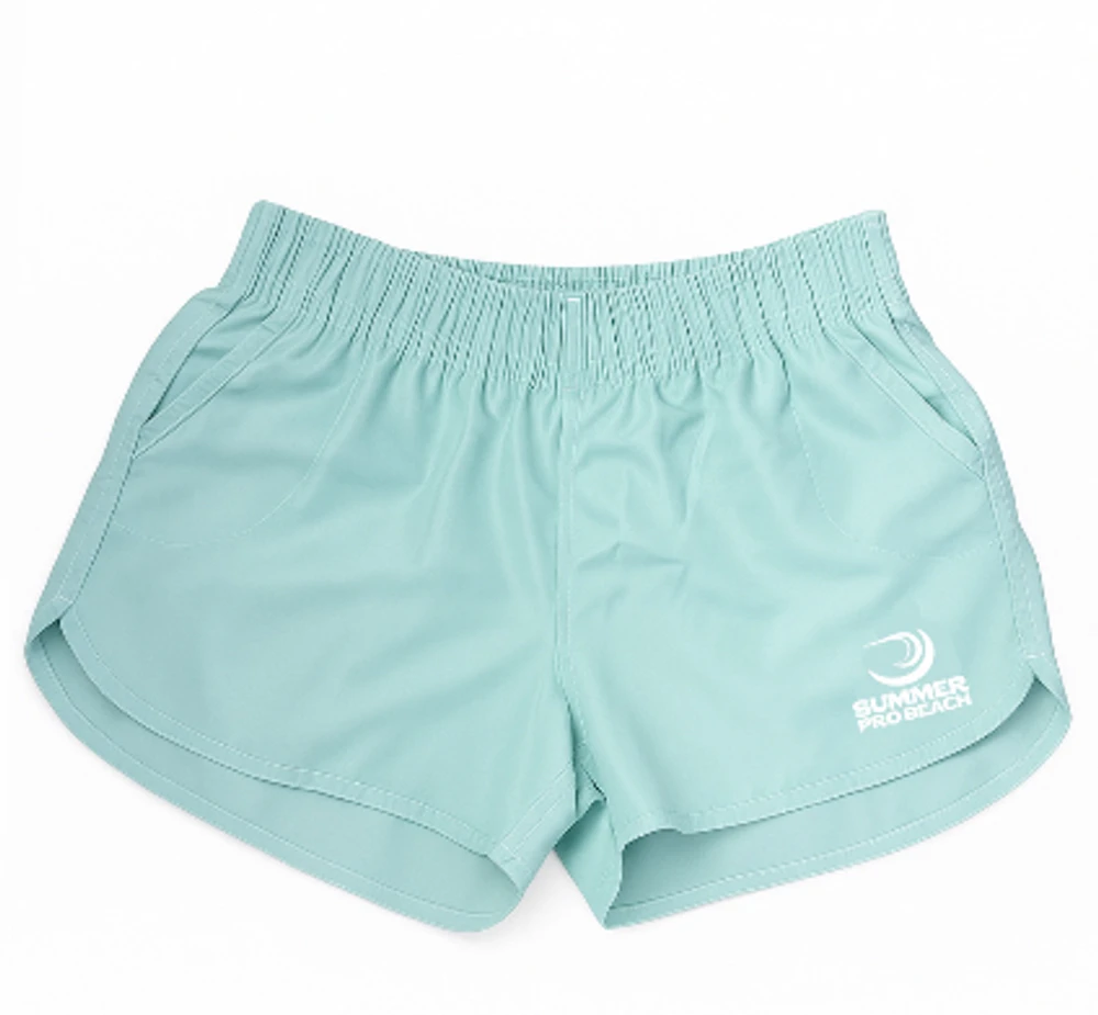 O acabamento em viés tom sobre tom dá um toque refinado e o logo Summer Pro Beach na perna direita reforça a autenticidade e qualidade da marca.