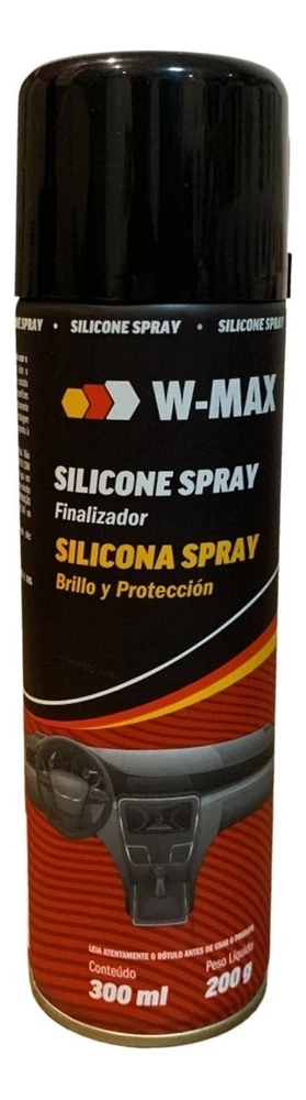 Silicone Spray W-MAX WurthO silicone spray W-MAX é adequado para lubrificaçãode superfícies metálicas e não metálicas; restauração do brilho e proteção contra raios U.V. em plásticos e borrachas; repele umidade em componentes elétricos além de limpeza em geral em superfícies como couro, plástico, borracha e madeira.Características- Produto evita aderência de sujidades, deixando as superfícies livres de atrito reduzindo seu desgaste.- Antiestático, evita o acúmulo de poeiras, mantém as superfícies limpas e brilhantes.- Protege as superfícies metálicas contra umidade, oxidação, corrosão e ferrugem, prolongando assim sua vida útil.- Após aplicação mantém-se estável.- Protege contra raios U.V., lubrifica, limpa e dá brilho.- Evita o ressecamento de peças plásticas e borrachas.- Proporciona um acabamento limpo, seco e com brilho duradouro.- Evita e protege as superfícies contra efeitos da maresia.Aplicações- Lubrificação e proteção de superfícies metálicas e não metálicas, tais como: metal, couro, vinil, plástico, borracha, madeira, cerâmica e etc.- Protege cabos e chicotes elétricos e eletrônicos.- Desmolde de peças plásticas para equipamentos eletrônicos.- Manutenção de equipamentos na linha de produção.- Lubrificação de mesas de guilhotinas gráficas.- Tratamento superficial em mármores e granitos, exceto pisos.- Lubrificação da canaleta do vidro automotivo.- Manutenção das partes plásticas do interior do veículo.Restrições de usoNão utilizar o produto em:- Pedais.- Manoplas.- Selins e bancos de moto e bicicleta.- Pisos e assoalhos.Modo de usar- Limpe e seque a superfície a ser tratada.- Agite a lata antes de usar.- Aplique o produto a uma distância de 20cm.- Em locais de difícil acesso, utilize o prolongadorPRINCIPAIS VANTAGENS- Protege plásticos, borrachas e metais.- Reduz o atrito e consequentemente o desgaste.- Evita ruídos.- Lubrifica fechaduras, dobradiças, trilhos de cortinas e persianas.- Protege contra a maresia.- Propriedade desmoldante.
