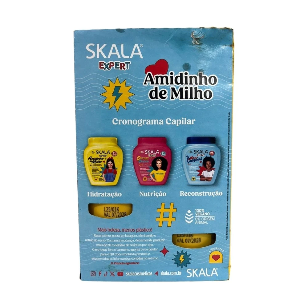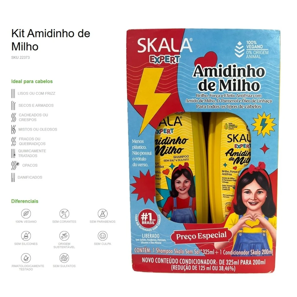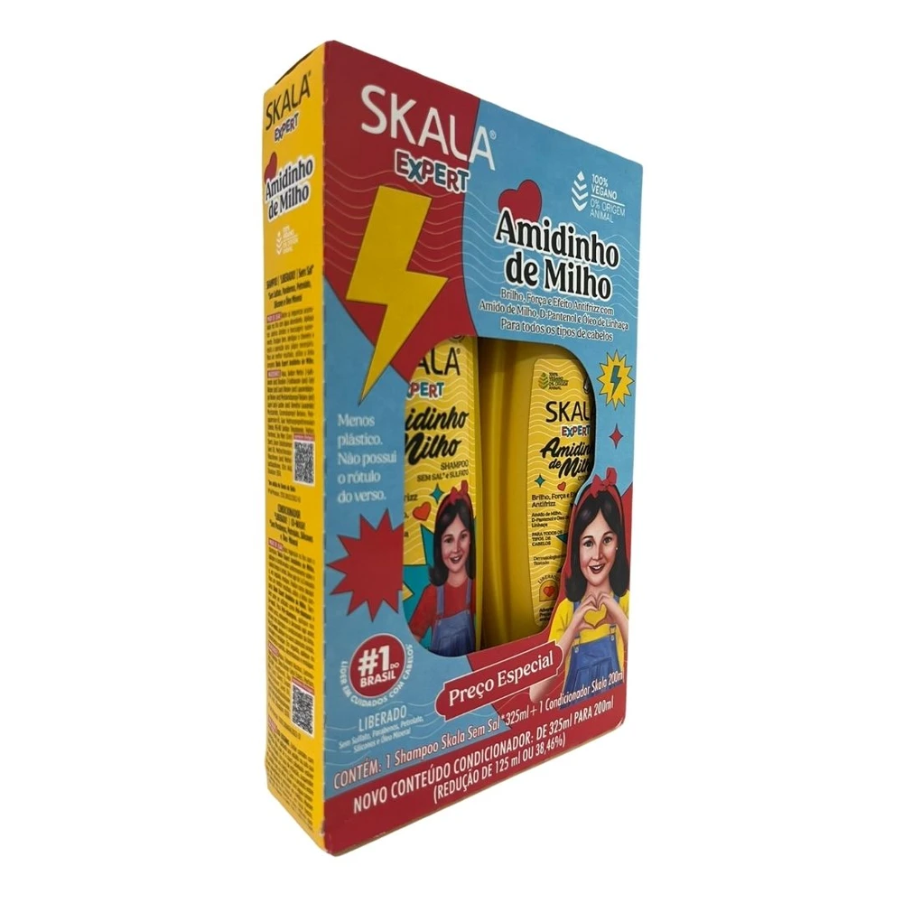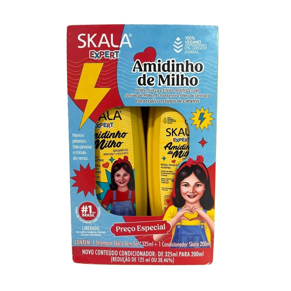 A linha Skala Expert Amidinho de Milho Kids veio para você que busca um aliado para todos os dias! Combinamos ativos que levam hidratação, força e efeito antifrizz em uma formulação leve, desenvolvida para fios delicados. Além disso toda a linha é liberada, ou seja, sem sulfatos, parabenos, petrolato e óleo mineral. Essa linha é indicada para o dia a dia de crianças a partir dos 3 anos! Muita praticidade e beleza para a rotina.