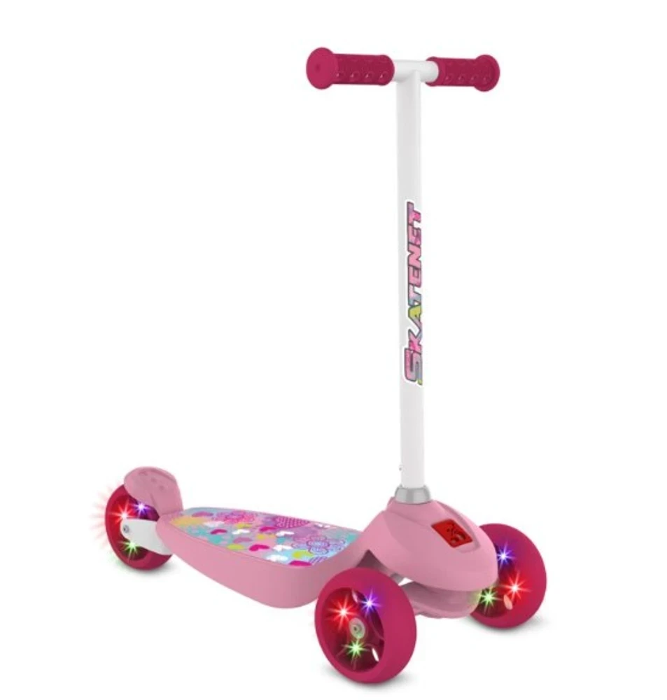 Rodas largas com luz de LED e com rolamento de alta performance.