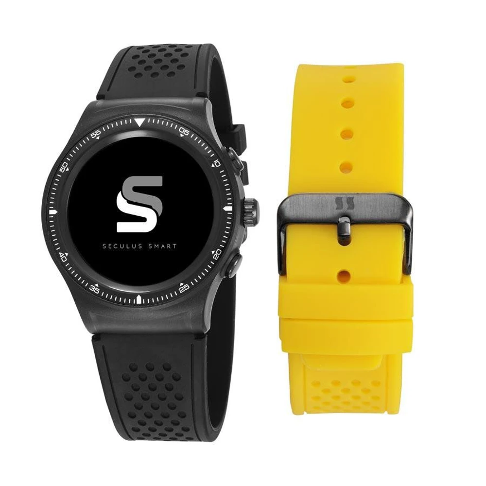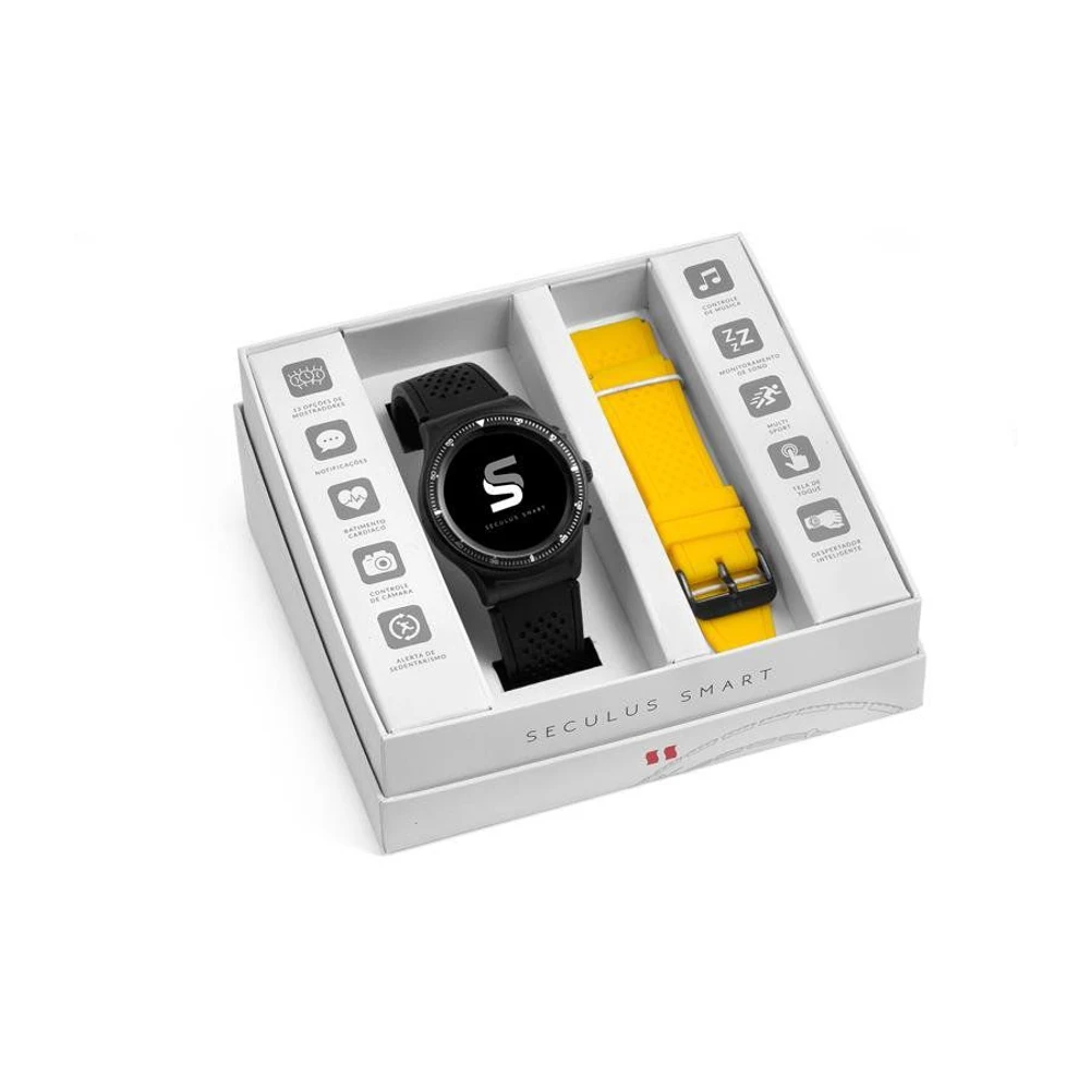 Possui Cronógrafo, Calendário, Agenda de Contatos, 13 Opções de Mostradores, Frequencímetro (Batimento Cardíaco), Monitoramento de Sono, Calculadora, Alerta de Sedentarismo, Pedômetro (Contador de Passos).