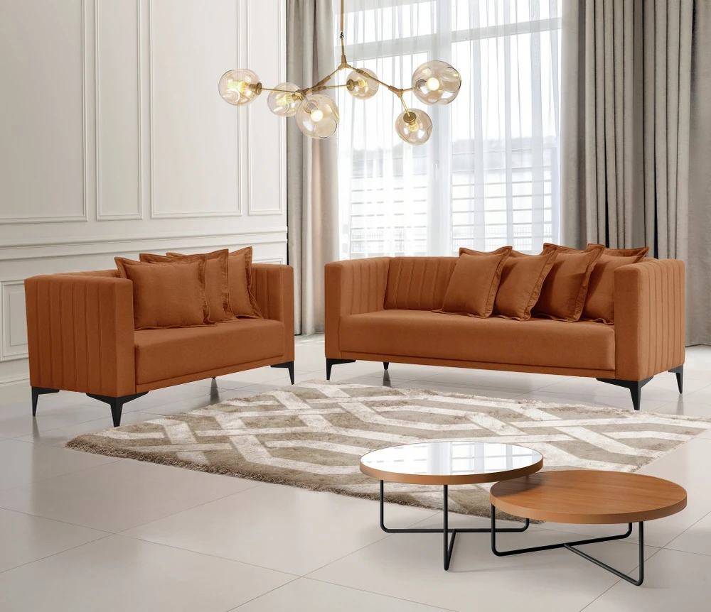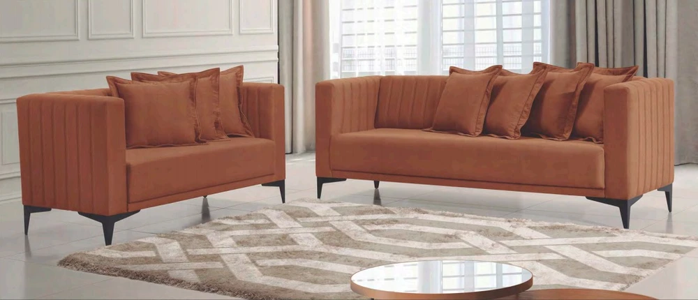 ESTOFADO FIXO DE 2 LUGARES PÉS DE FERRO ACOMPANHA 3 ALMOFADAS (mais almofadas podem ser adquiridas separadamente)