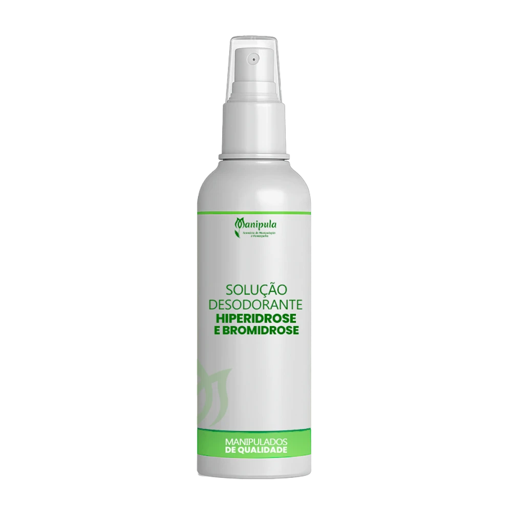 A Solução Desodorante Manipulada é formulada com Hexatrate®, ativo inovador que combina efeito antitranspirante e desodorante sem causar irritação. Associada à Alantoína, com ação calmante, ao Irgasan (antimicrobiano eficaz) e ao Álcool q.s.p., promove controle seguro e prolongado da transpiração excessiva (hiperidrose) e do odor desagradável (bromidrose).
