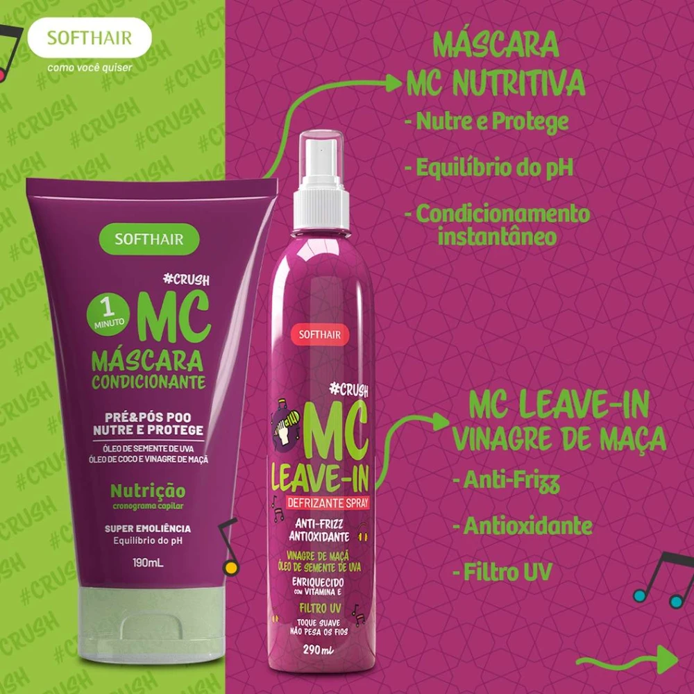 Uma mistura explosiva para finalização dos fios! O Defrizante Spray MC Leave-In contém uma série de ativos que confere proteção térmica com textura suave. O principal deles é o Vinagre de Maçã que é um potente regulador do pH da cutícula do fio, mantendo-a selada, reduzindo assim o aspecto poroso dos fios e garantindo uma explosão de brilho. Contém também o Óleo de Semente de Uva que é rico em vitamina E que possui propriedades antioxidantes além de deixar os fios extremamente macios e hidratados. Textura suave. Não pesa e não deixa os fios oleosos. pH: 4,00 | Low Poo | Filtro UV | Anti-Frizz | Antioxidante | Enriquecido com vitamina E