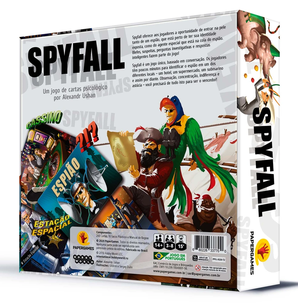 Spyfall oferece aos jogadores a oportunidade de entrar na pele tanto de um espião, que está perto de ter sua identidade exposta, como do agente especial que está na cola do espião. Blefes, suspeitas, perguntas investigativas e respostas inteligentes fazem parte do jogo!
