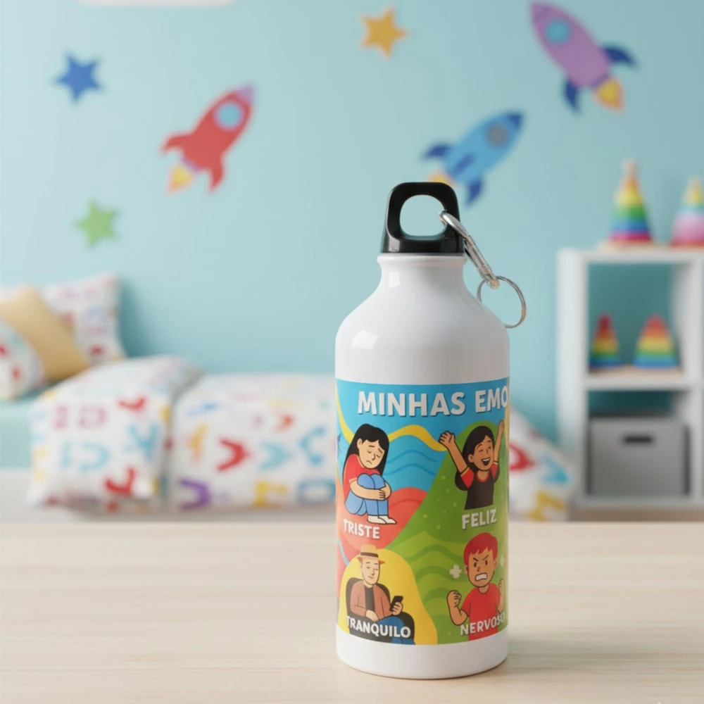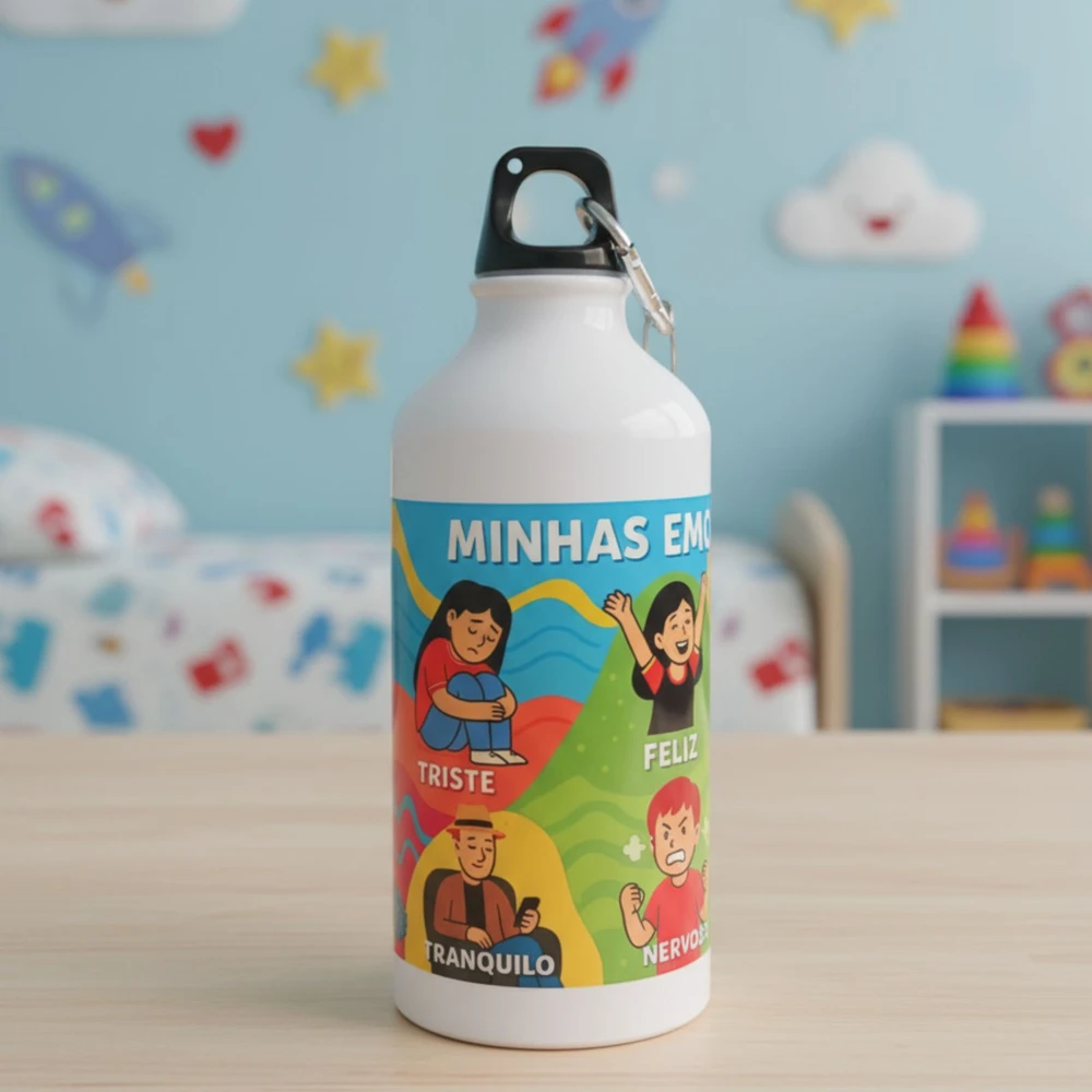 Com design colorido e encantador, o squeeze apresenta expressões que representam diferentes estados emocionais, ajudando na comunicação e na autorregulação das crianças. Fabricado com material resistente e seguro, é ideal para levar à escola, terapias ou passeios, incentivando a hidratação e, ao mesmo tempo, promovendo a conscientização emocional.