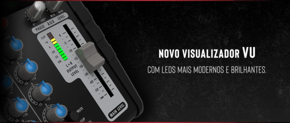 Saída MAIN Out (P10 + RCA) + Saída AUX Out (P10 + RCA) com controle de volume e controle de fase para AUX Stetsom+1