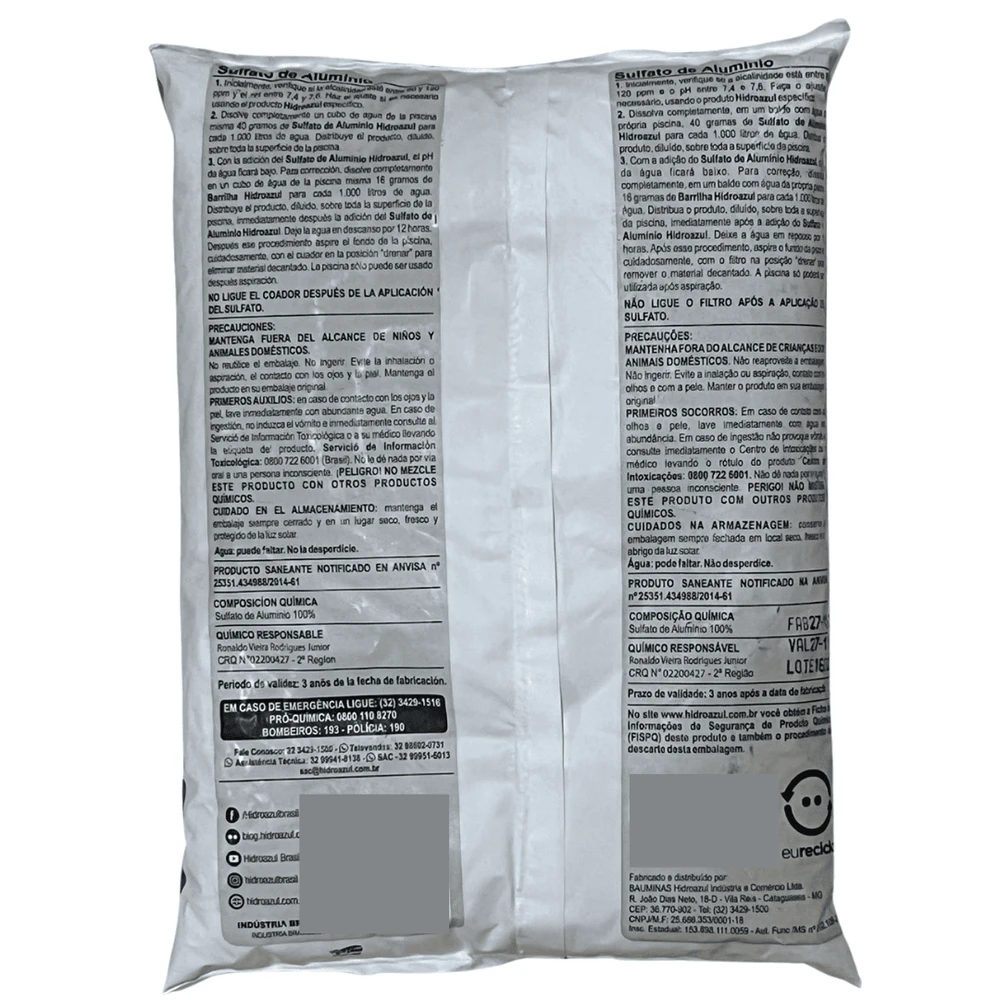 Sulfato de Aluminio Hidroazul Pacote 02 kg.