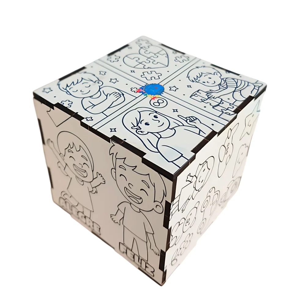 Transforme o momento de aprendizado em uma experiência sensorial, criativa e profundamente significativa com o Super Cubo de MDF para Pintar, agora acompanhado de um kit completo com canetinhas coloridas, ideal para despertar sentimentos, cores e conexões de forma prática, limpa e encantadora. Esta ferramenta foi desenvolvida com muito carinho para auxiliar no desenvolvimento cognitivo e emocional de crianças com Transtorno do Espectro Autista (TEA), promovendo o autoconhecimento, a expressão dos sentimentos e a interação com o mundo ao redor – tudo isso de maneira lúdica, afetuosa e acessível.