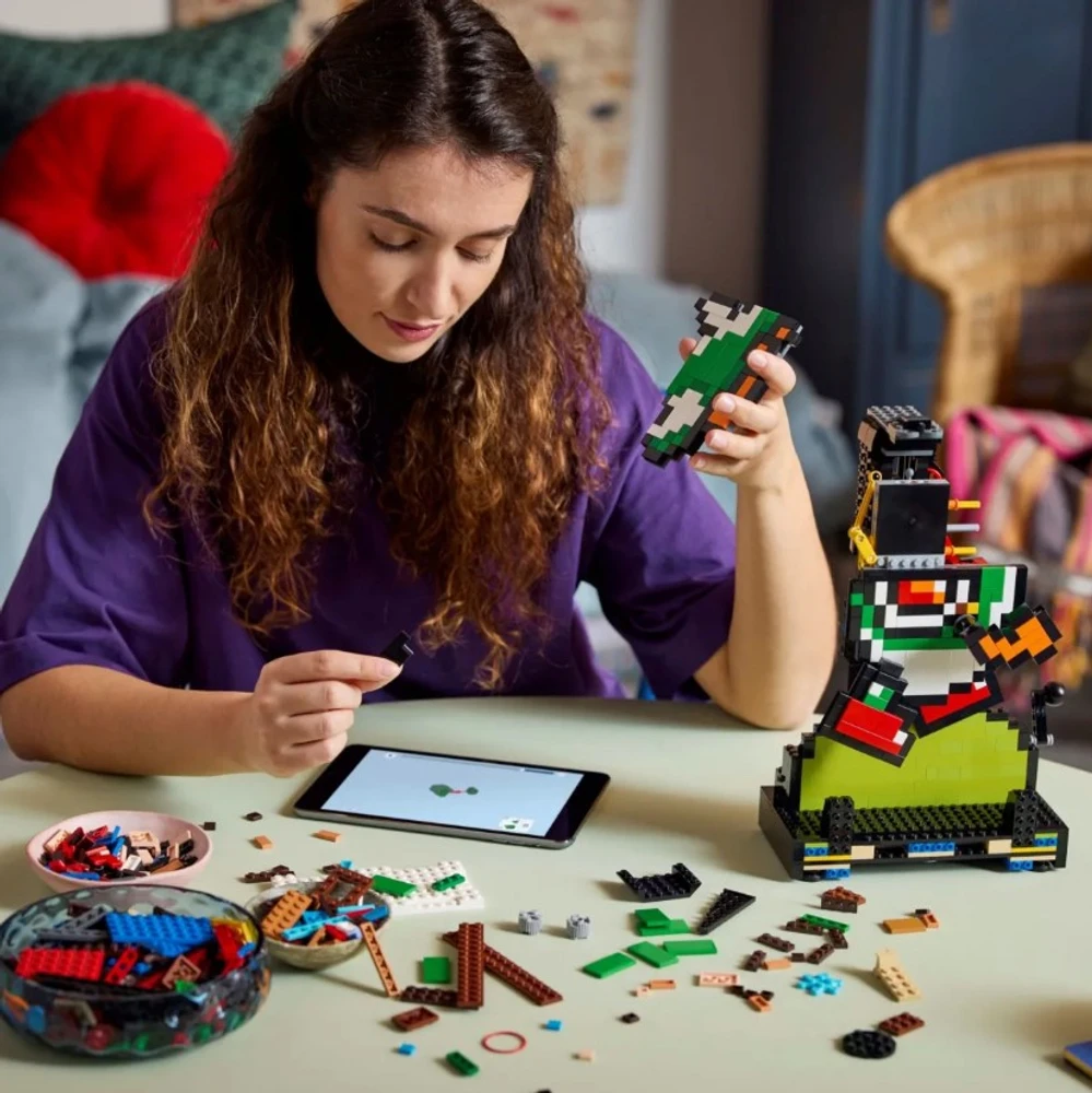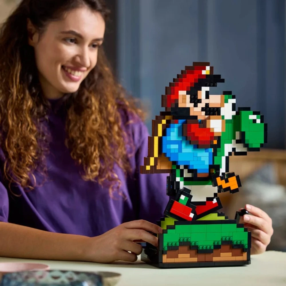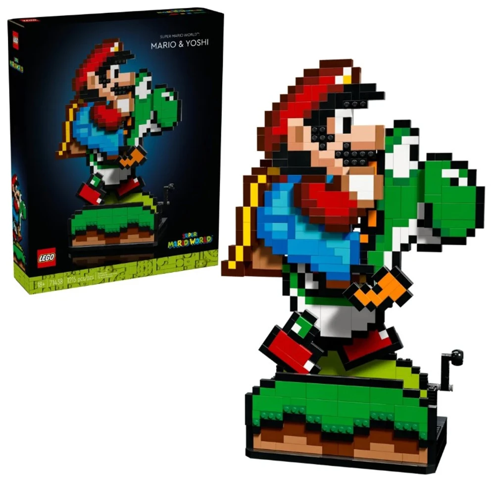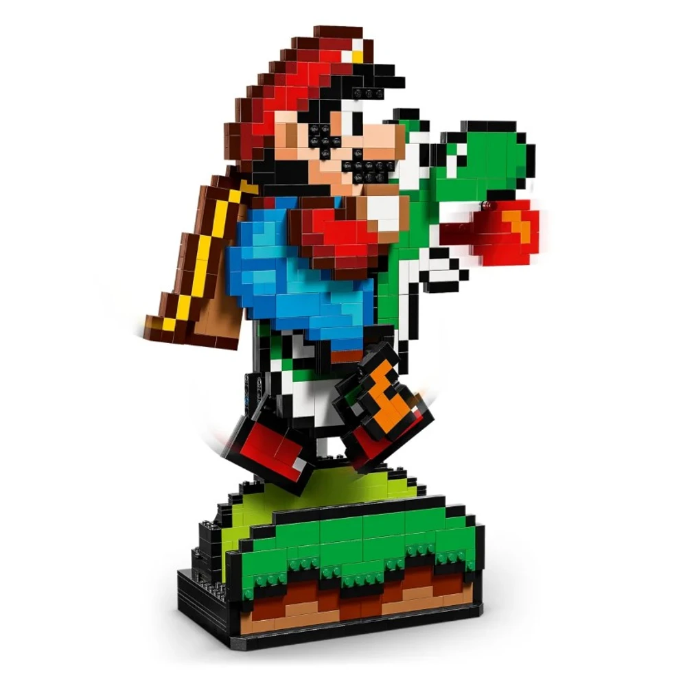 Crie nostalgia pelos visuais encantadores de uma geração anterior de jogos Super Mario com este divertido modelo de exposição Super Mario World: Mario & Yoshi. Um divertido presente LEGO Super Mario Nintendo para adultos, este conjunto colecionável apresenta figuras pixeladas de Mario e Yoshi Nintendo e é uma decoração divertida para qualquer casa ou escritório de fã. Gire a manivela para fazer Yoshi correr com Mario nas costas e gire o seletor para fazer a língua de Yoshi aparecer e sair. O conjunto de jogos Super Mario inclui uma Action Tag para que você também possa adicionar uma figura LEGO Mario, LEGO Luigi ou LEGO Peach (dos conjuntos 71439, 71440 ou 71441 - vendidos separadamente) para uma experiência interativa. Encontre instruções de construção no aplicativo LEGO Builder para orientar cada etapa da sua experiência criativa e envolvente com este colecionável Mario. Contém 1.215 peças.