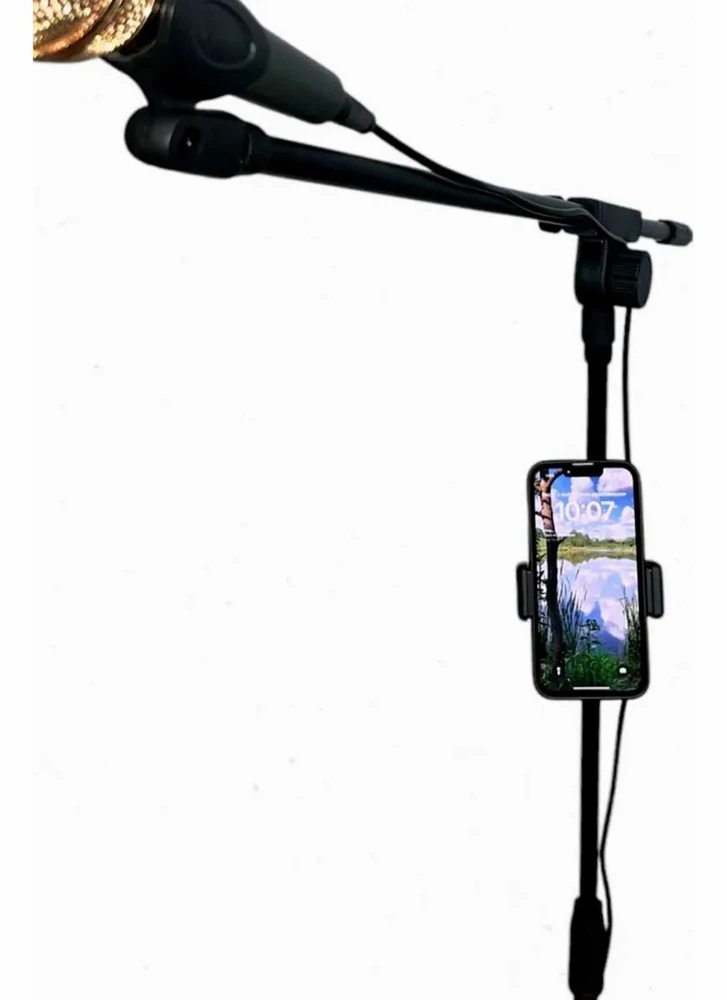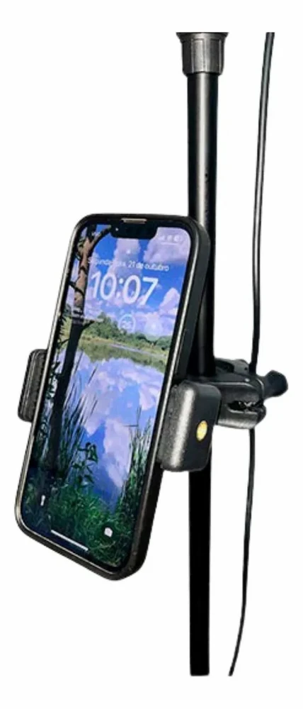Ideal para cantores, músicos de palco, grupos, performances solo ou ensaios onde se deseja ter o celular visível e fixo junto ao microfone (letras, apks de setlist, gravação de voz etc.).