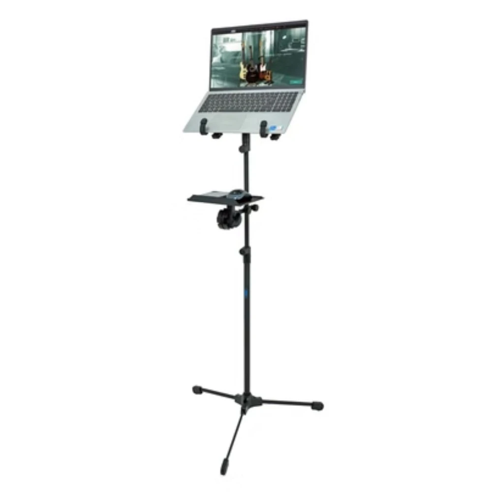 Suporte versátil desenvolvido para acomodar notebooks, tablets, smartphones, instrumentos de mão e pequenos equipamentos com total estabilidade. Ideal para igrejas, eventos, palestras e ambientes profissionais, permite organizar e posicionar equipamentos na altura correta, facilitando o uso durante apresentações e operações ao vivo. Sua estrutura robusta com ajustes de altura e inclinação oferece praticidade, conforto visual e segurança no apoio dos dispositivos.
