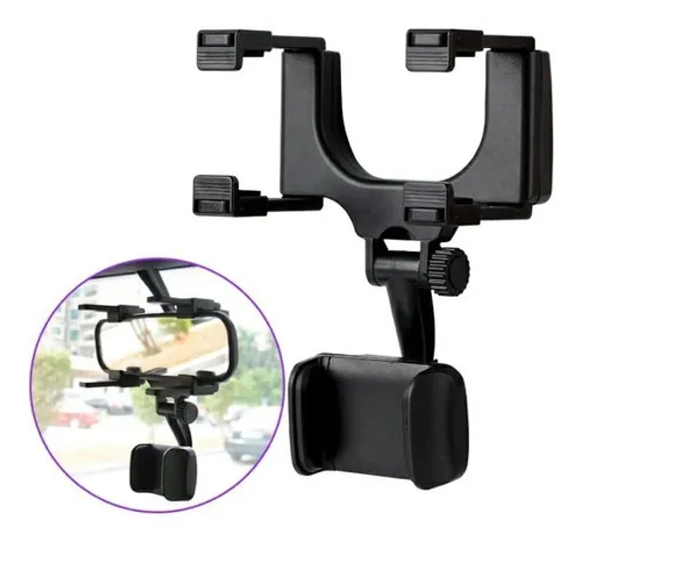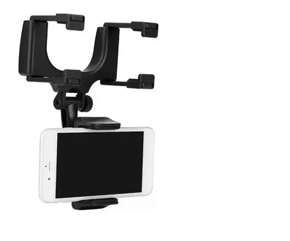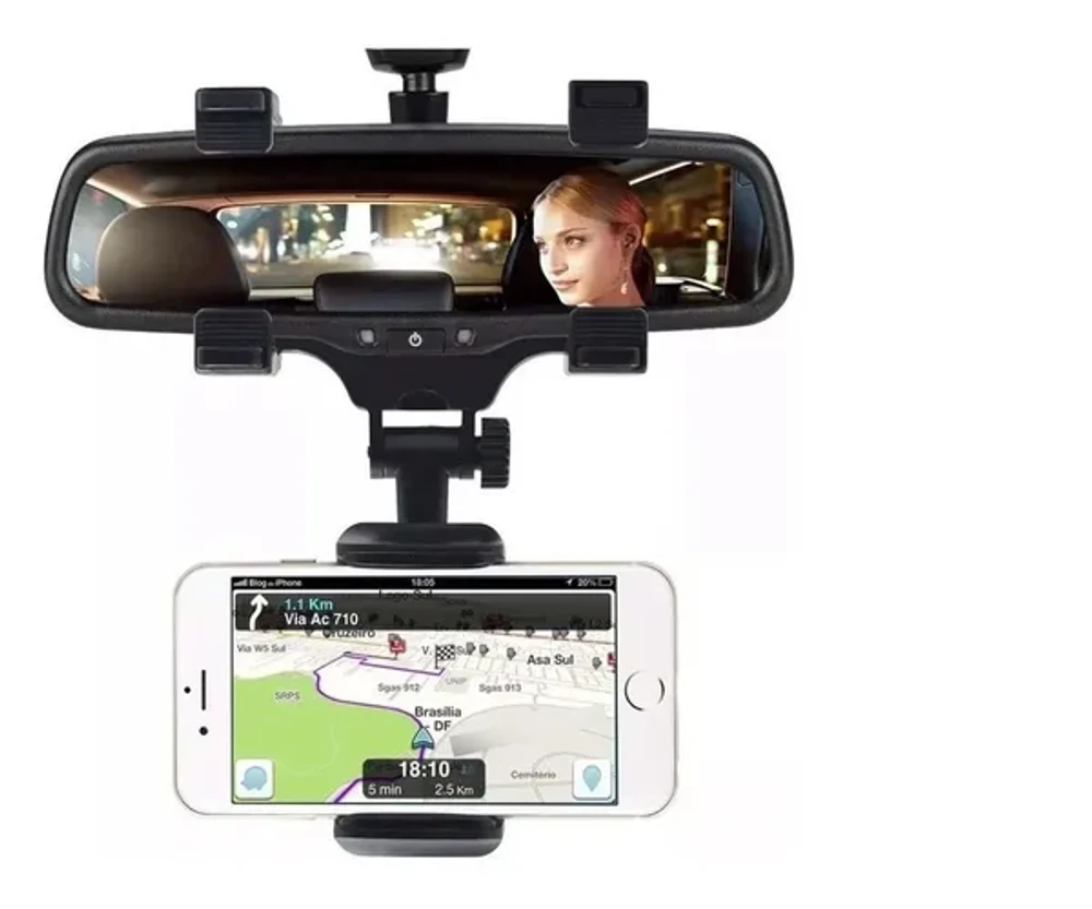 Suporte de celular universal para fixação no espelho retrovisor do carro.