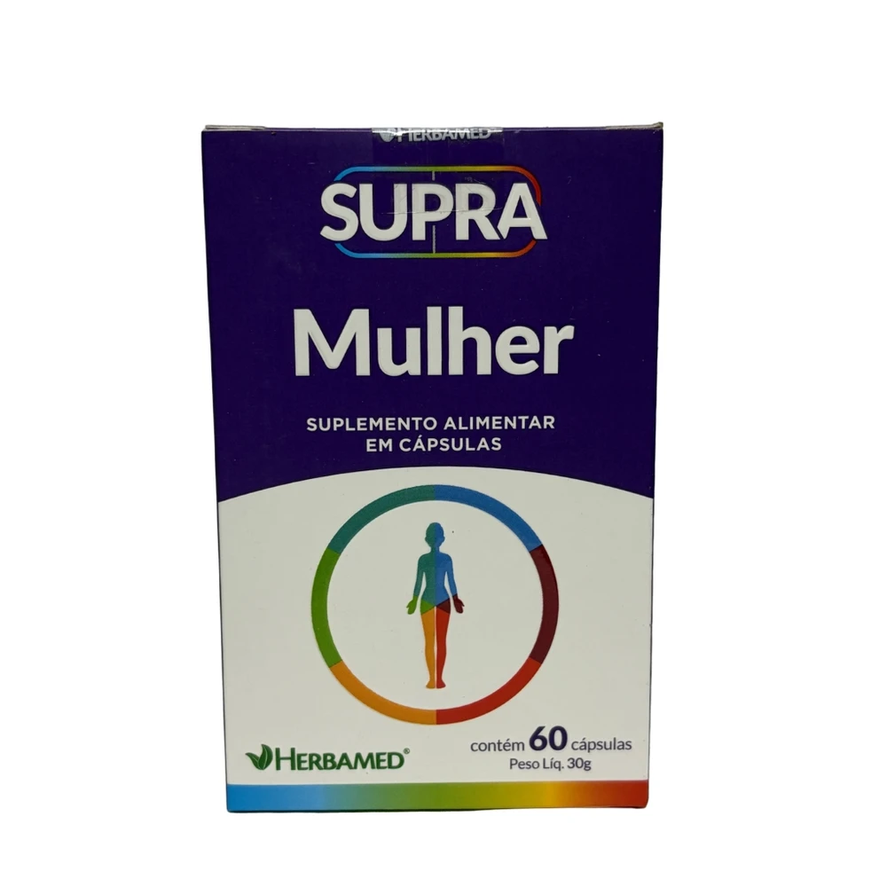 O Supra Mulher (Herbamed) é um polivitamínico de A a Z formulado para as necessidades femininas, contendo mais de 20 vitaminas e minerais essenciais. Disponível em frascos de 60 cápsulas (500mg), é indicado para aumentar a energia, fortalecer o sistema imunológico, melhorar a saúde da pele, unhas e cabelos, além de ter ação antioxidante.