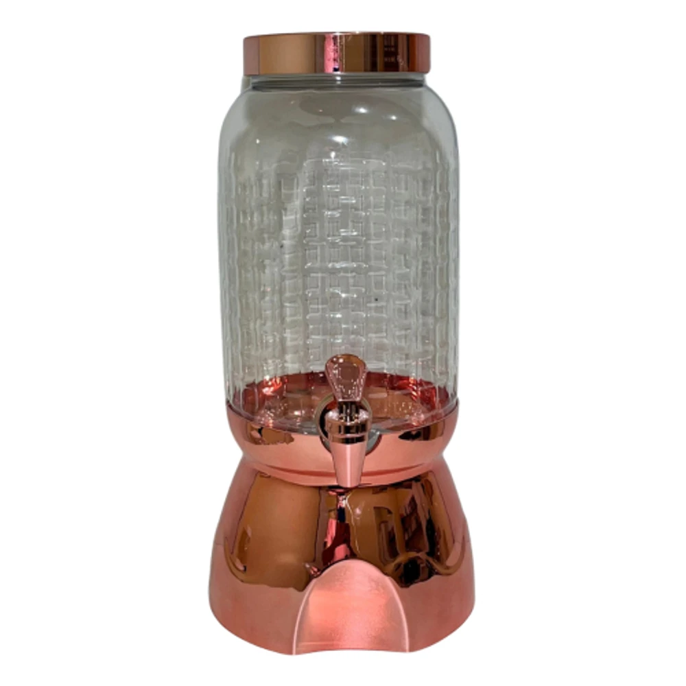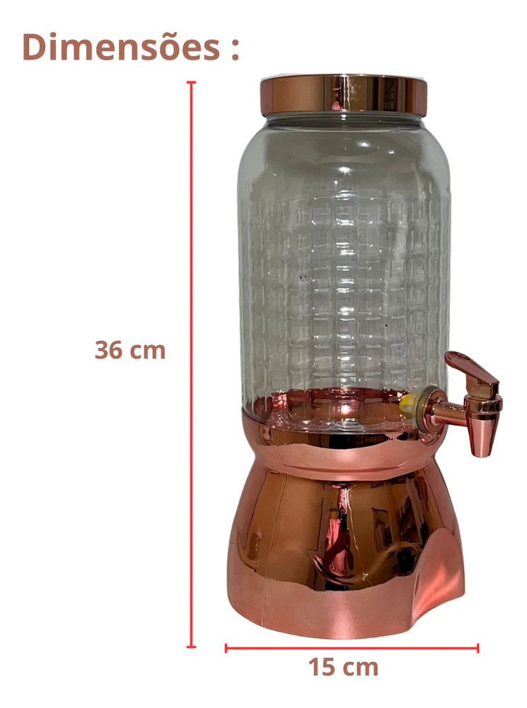 POTE WAVE 3,6LT COM SUPORTE E TORNEIRA 3,6LT ROSEO Pote com Torneira e Suporte Wave é ideal para armazenar bebidas em geral, como sucos, água, etc.Tem capacidade para 3,6 litros e dispenser para facilitar ainda mais o uso.O Suporte além de servir como base para o recipiente, possui acabamento metalizado, tornando-o esteticamente mais bonito e funcional, em qualquer ambiente.DADOS TÉCNICOSALTURA: 35,9CM (Com Suporte)Diâmetro do recipiente: 15,2cmMaterial: PlásticoCapacidade: 3,6LTDiâmetro da boca: 10cm