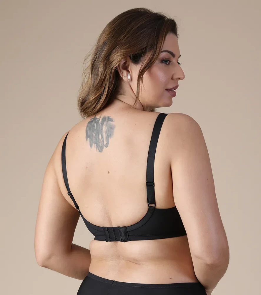 Diferenciais: Bojo em camadas, aro importado, alças largas e reguláveis, fecho triplo nas costas, laterais e cavas reforçadas, levantamento de até 4 cm e redução de até 1 tamanho, sustentação para seios grandes e extra-grandes, tecido biodegradável SOUL ECO®