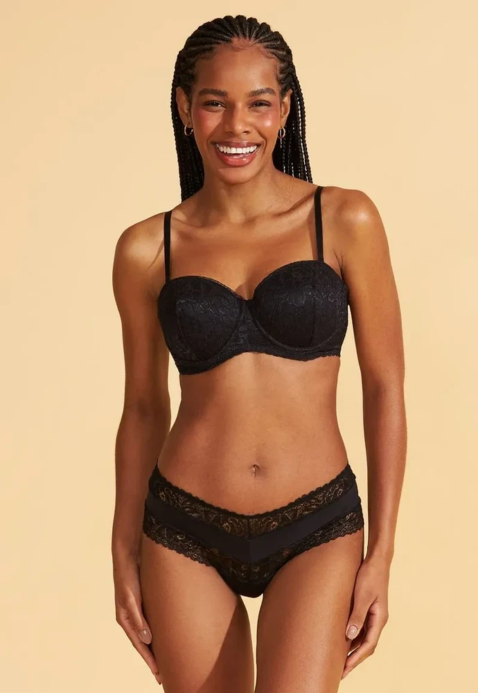 Detalhes: Bojo estruturado, alças removíveis, renda delicada