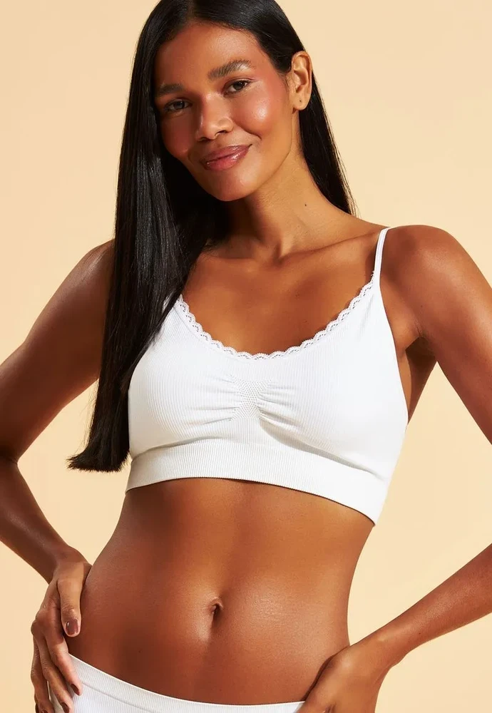 O sutiã sem costura com renda Recco combina conforto, elegância e sustentabilidade em uma única peça. Confeccionado com fio biodegradável, proporciona toque suave e liberdade de movimento, sem apertar ou marcar sob a roupa. O delicado detalhe em renda no decote adiciona sofisticação, tornando a peça charmosa e graciosa para o uso diário.