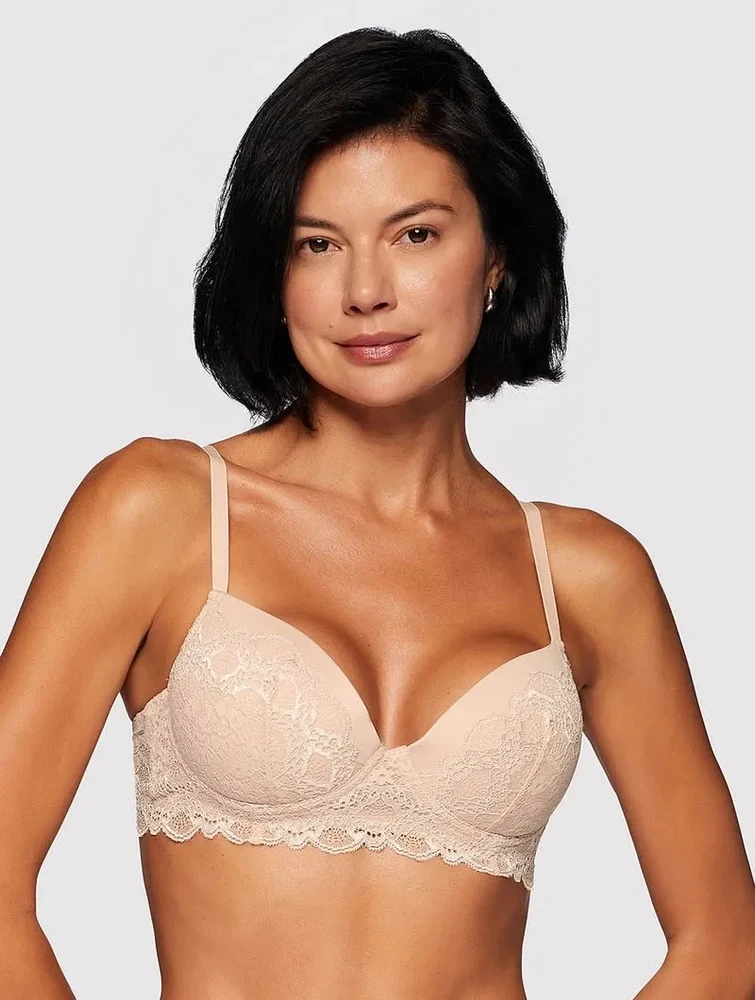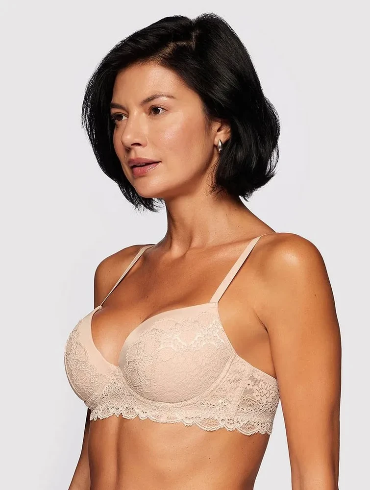 O sutiã Triumph une elegância e suporte, combinando bojo e aro para modelar a silhueta com conforto. Detalhes em renda delicada adornam a base da frente e o bojo, adicionando um toque sofisticado ao design. A base reforçada com barbatanas laterais garante sustentação superior, valorizando o busto com segurança e estilo.