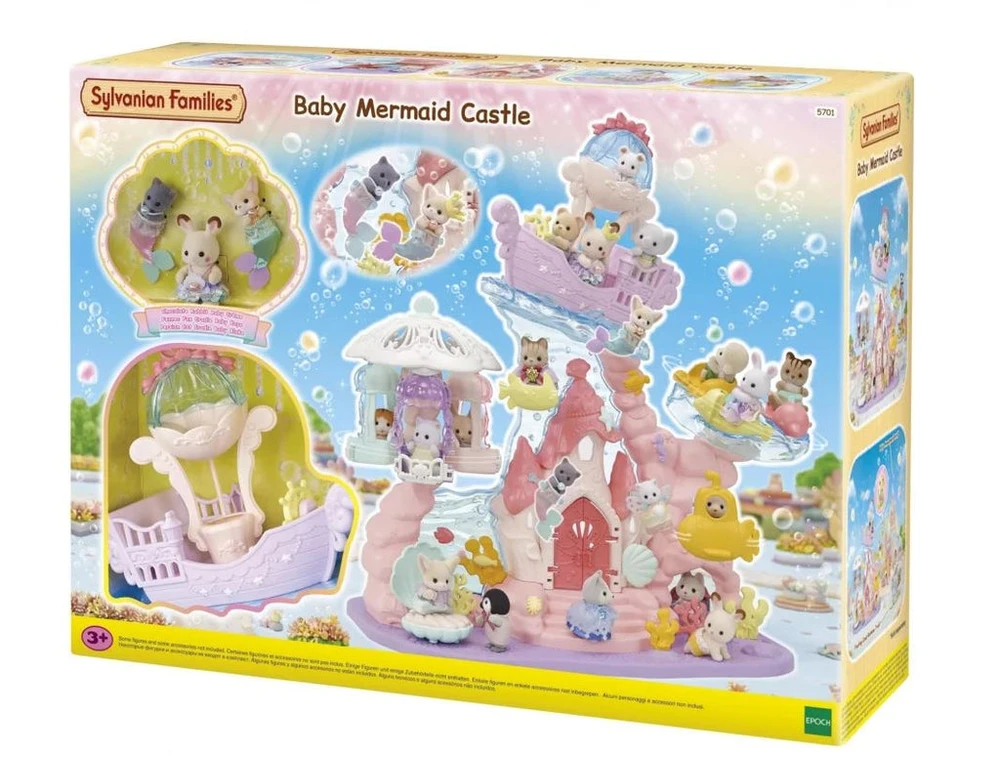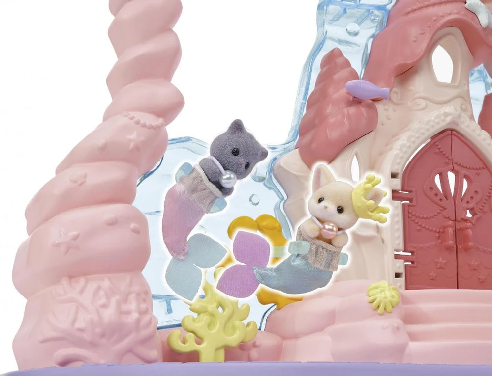 Set apresenta um parque de diversões com tema submarino, junto com três figuras de bebês. O conjunto inclui um lindo castelo de sereia, um passeio "Aqua-Go-Round", balanços de água-viva e muito mais para as figuras de bebê e berço andarem!