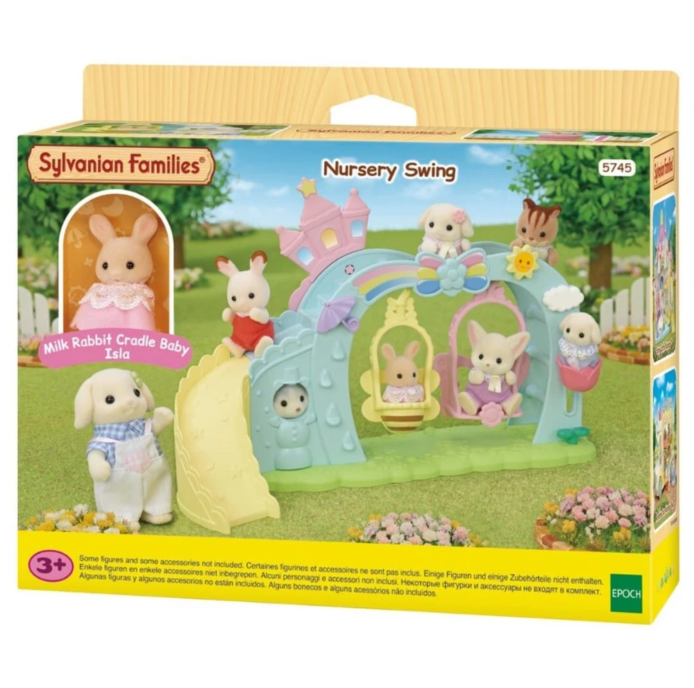 O balanço do berçário possui balanço e escorregador perfeitos para o berçário. Ele vem com um bebê embalado pelo Milk Rabbit.