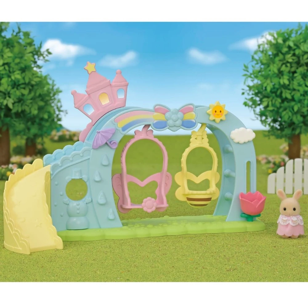 Combine com o Sunny Castle Nursery, Rainbow Fun Nursery Bus, Nursery Sandbox & Pool, Nursery Friends e Flora Rabbit Family (vendidos separadamente) para ainda mais diversão.