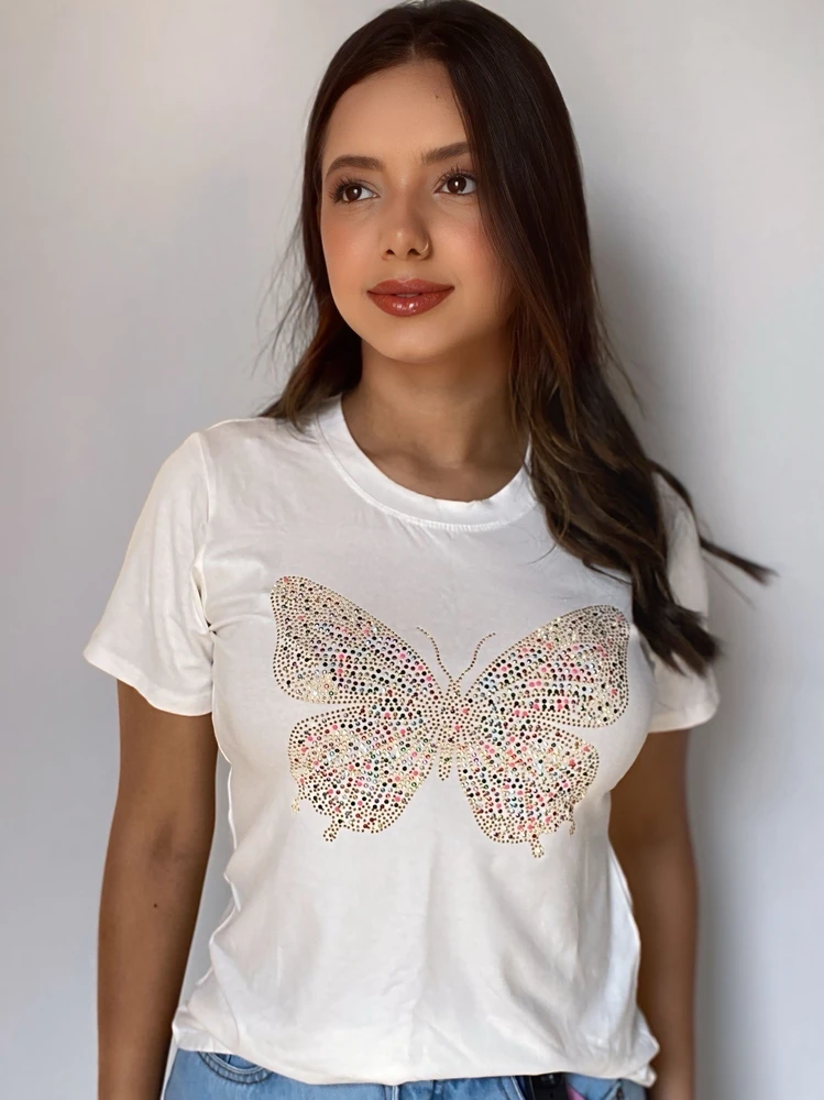 A T-Shirt com Pedrinha de Strass é o equilíbrio perfeito entre o básico e o sofisticado!