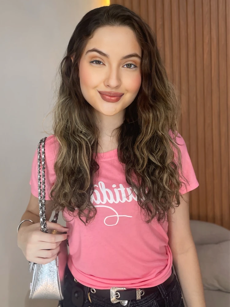 A estampa com a palavra “Gratidão” traz um mood motivacional e moderno, perfeito para compor looks casuais cheios de significado.