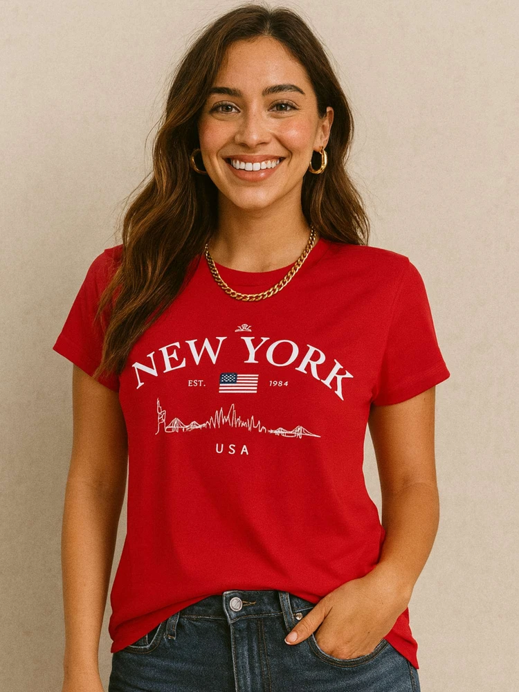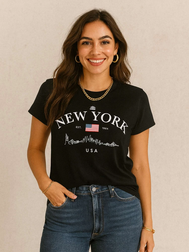 A t-shirt feminina da Revanche Jeans é perfeita para quem ama unir conforto e estilo. Com modelagem ajustada, manga curta e decote redondo, a peça traz uma charmosa estampa ?New York? que adiciona um toque moderno e romântico ao look.