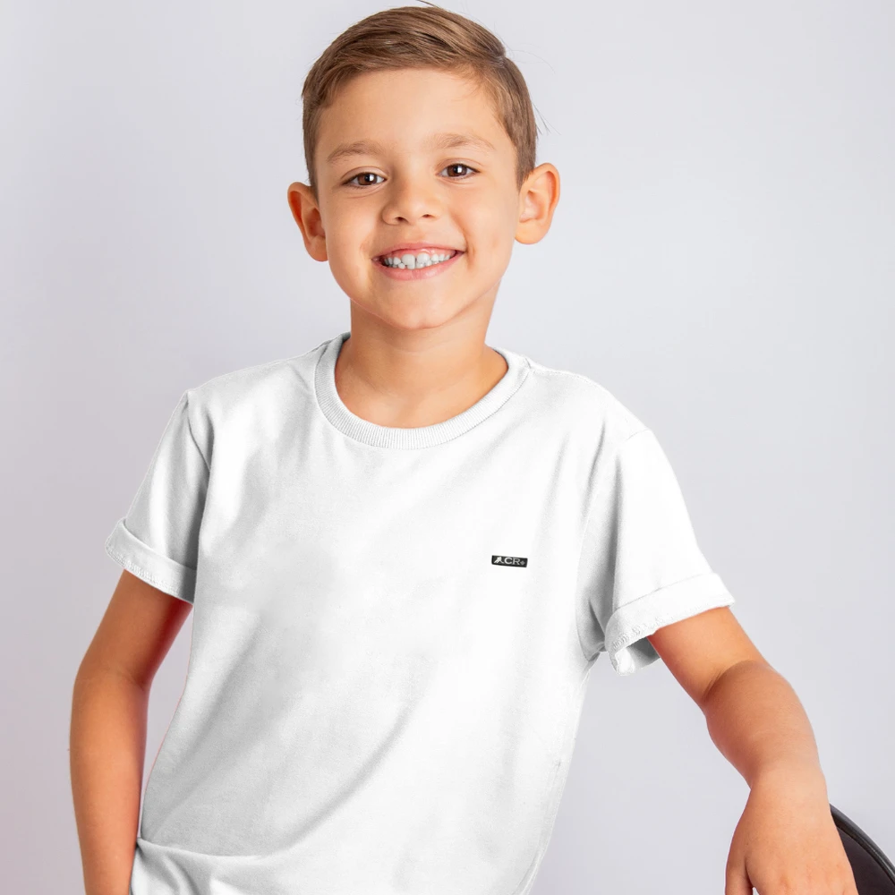 Uma T-Shirt tradicional infantil cotton Placa que parece unir conforto excepcional, maciez natural e um toque de ajuste confortável, ideal para pais que buscam uma peça clássica, prática e confortável para seus pequenos!