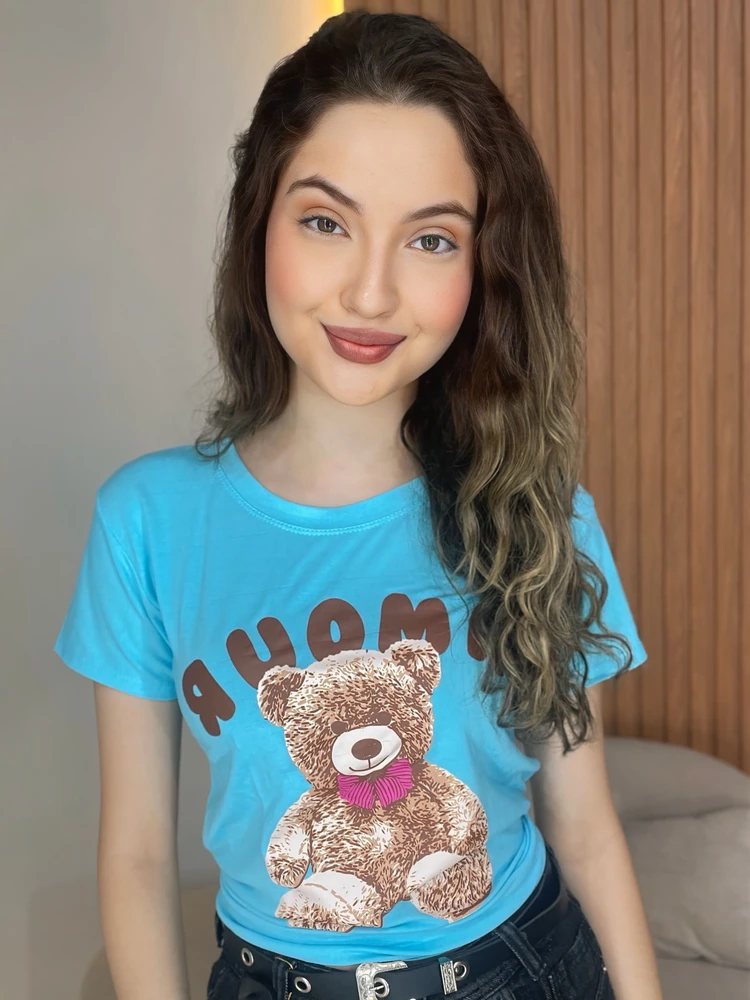 A estampa do ursinho “Amour” traz um visual delicado, moderno e super romântico, deixando o look mais leve e estiloso. A modelagem tradicional se ajusta ao corpo sem marcar, sendo ideal para composições casuais ou arrumadinhas.