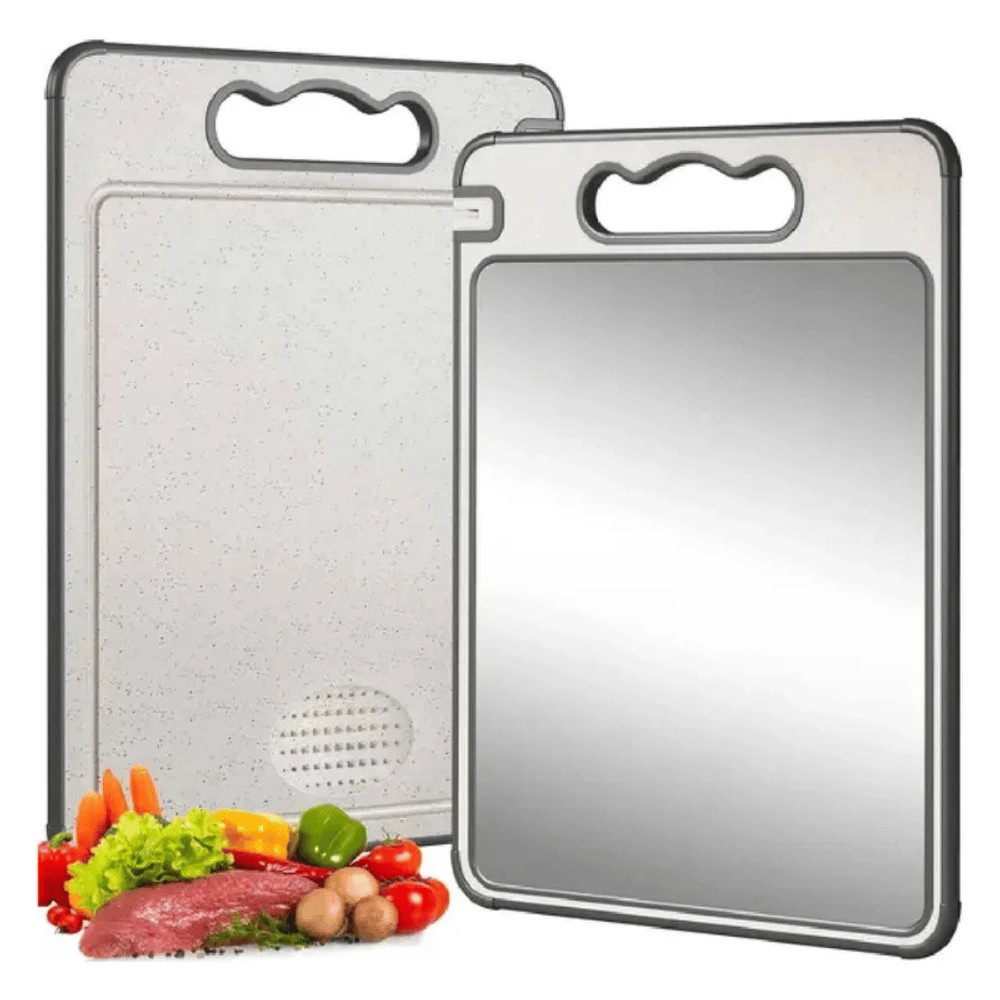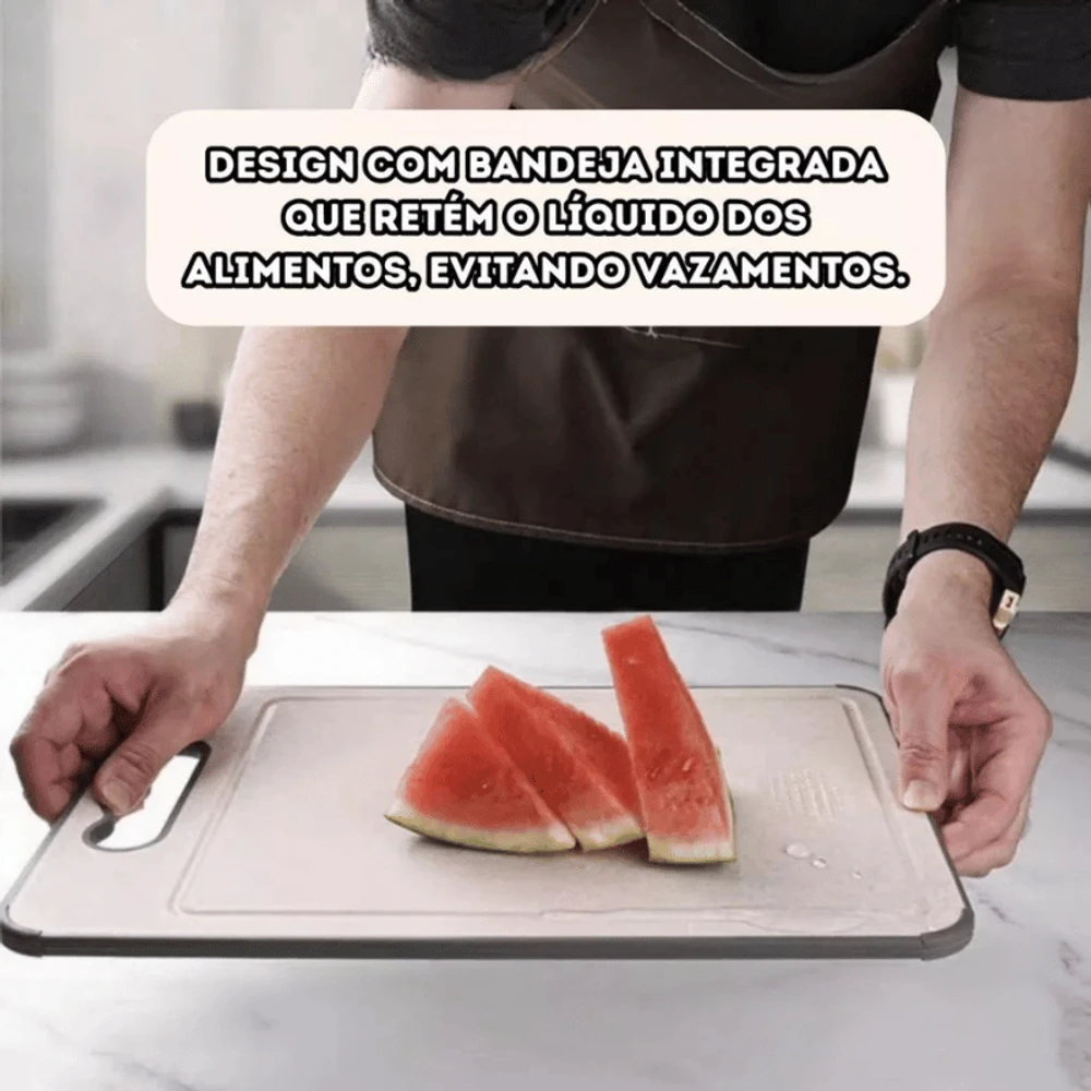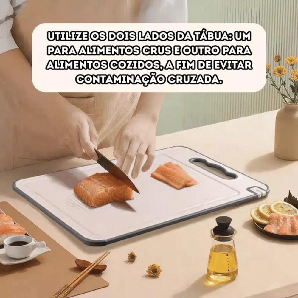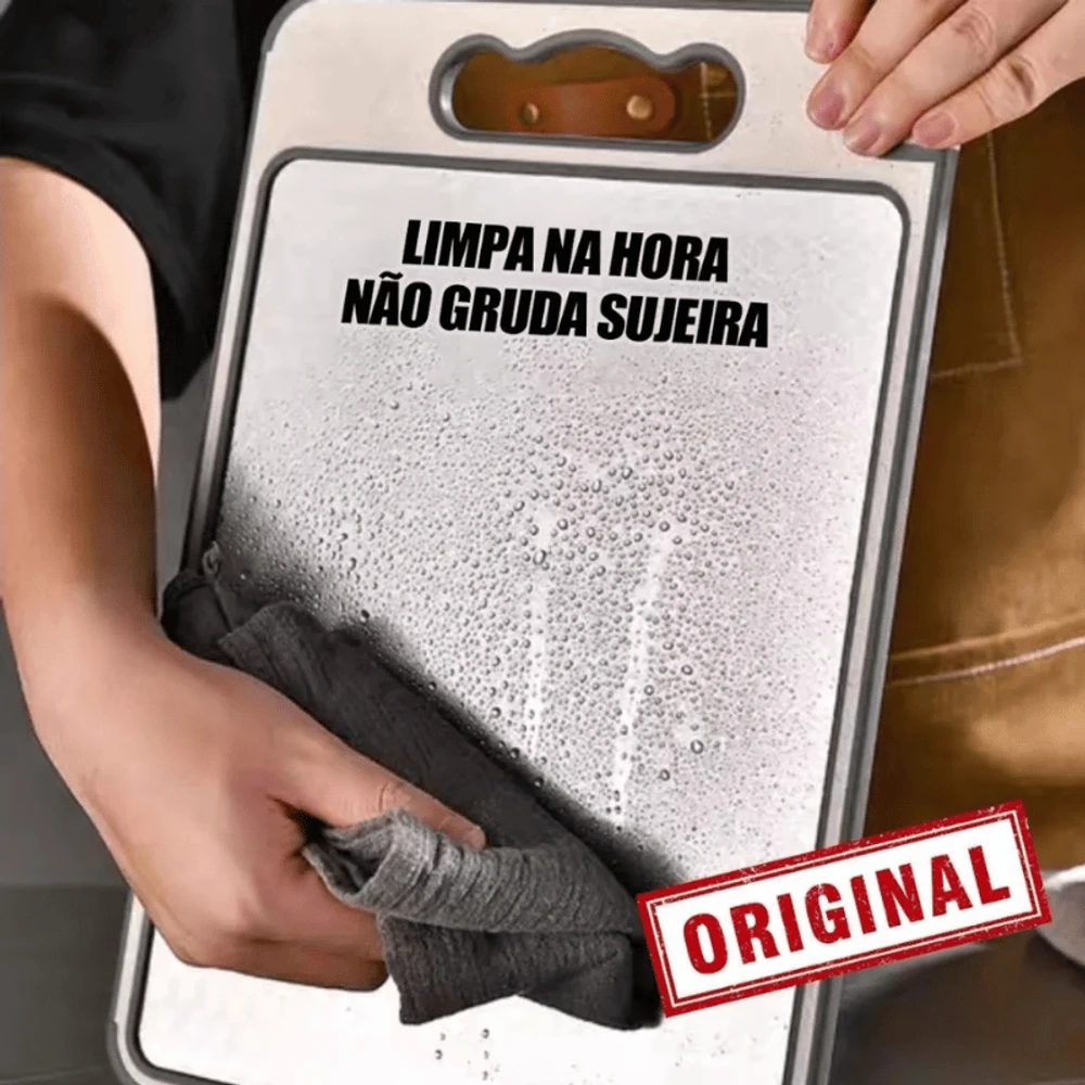 Dupla Face: inox para carnes e PP antibacteriano para frutas, legumes e alimentos prontos