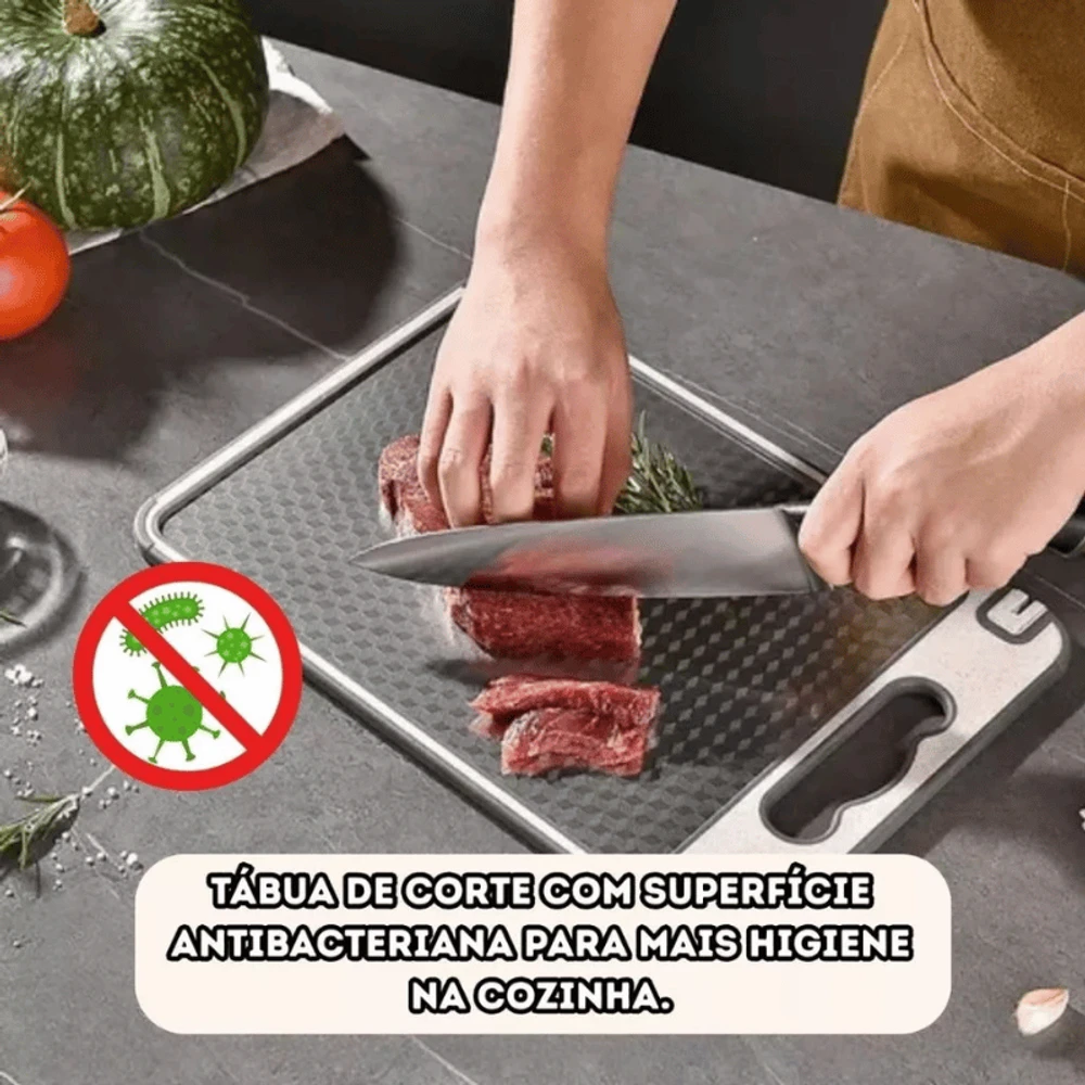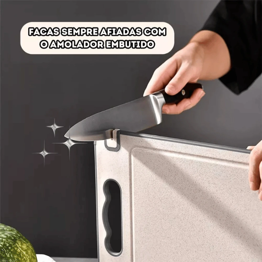 Garanta agora a sua Tábua de Corte Dupla Face com Afiador e Moedor de Alho e transforme sua rotina na cozinha.