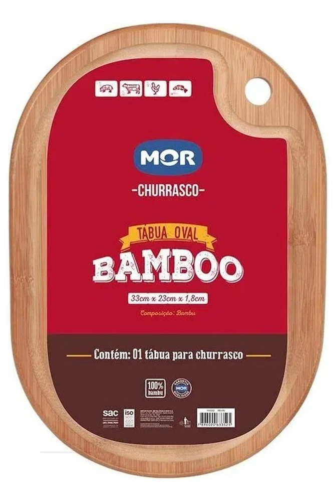 Ecologicamente corretas, as Tábuas Bamboo vão da churrasqueira para a mesa auxiliando nos momentos de confraternização entre familiares e amigos. A Tábua Oval 33cm x 23cm da Mor pode ser utilizada tanto para o corte de legumes, verduras e carnes até ser levada à mesa sem deixar cair nada, pois possui sulcos nas bordas que evitam que qualquer líquido escorra. Também conta com um orifício em uma das extremidades para que seja pendurada, decorando sua cozinha. Além de forte e resistente, o bambu tem ação bactericida natural e como suas fibras não apresentam poros, não há acúmulo de resíduos. Ou seja, além de lindas são muito higiênicas!Especificações1) Material: Bamboo2) Não deve ser utilizada em fornos.3) Não deve ser utilizada em microondas.4) Resistênte a máquina de lavar louça.5) Lavar com água quente antes de usar.6) Não use produtos de limpeza abrasivos.