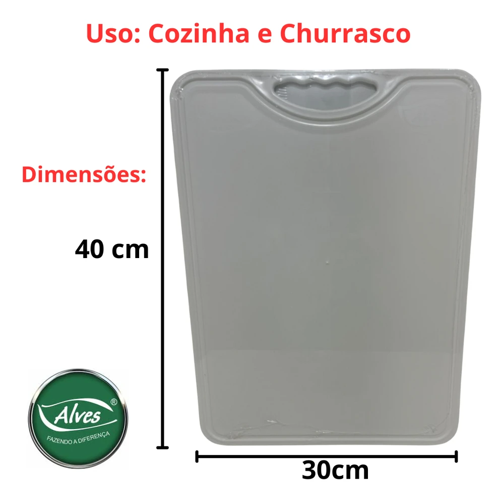 A Tábua Branca Alves Plastic serve para corte de lacticínios, frutas e massas em geral.