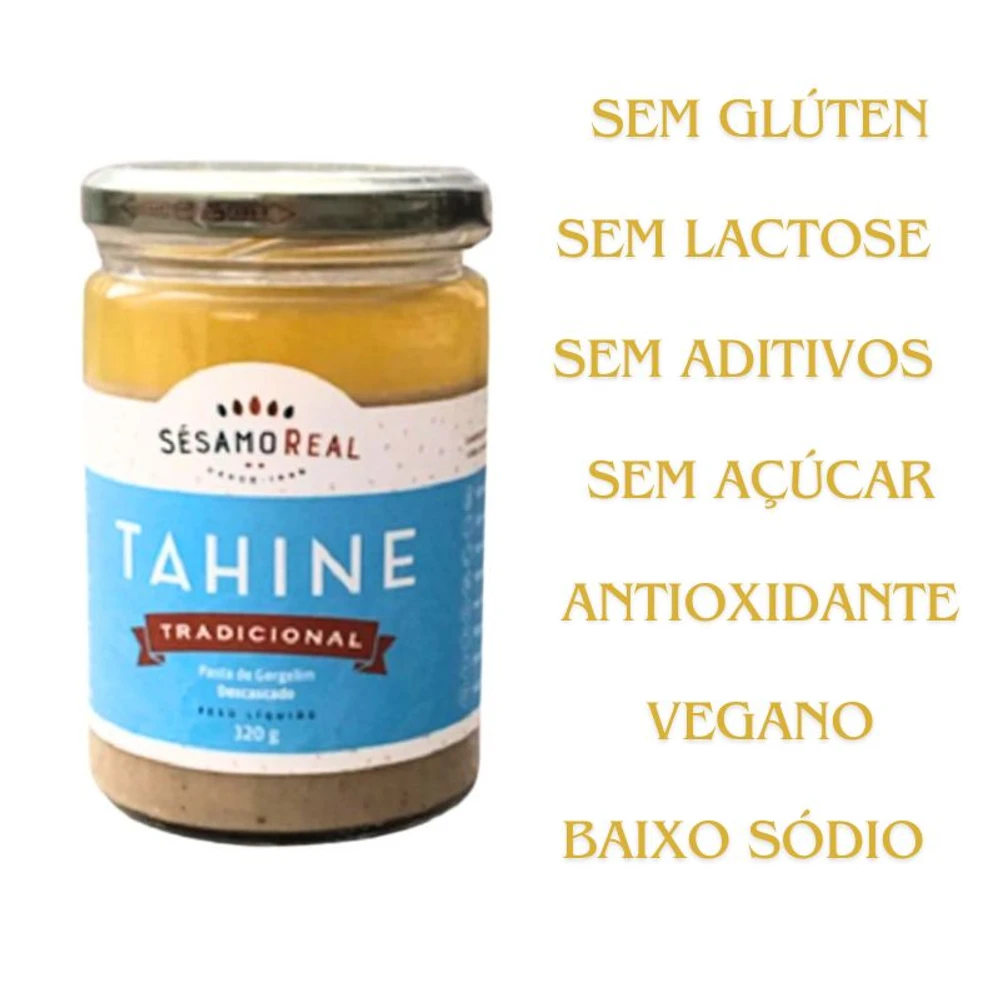 Tahine Tradicional - Pasta de Gergelim descascado Quantidade: 3 vidros de 320g Marca: Sésamo Real Tahine Pasta de Gergelim usado na culinária Árabe Excelente para um café da manhã saudável; pode ser combinado com mel, melado, etc. Sem Glúten. Sem Lactose. Sem Aditivos. Sem Açúcar. Antioxidante. Vegano. Baixo Sódio. Não GMO.