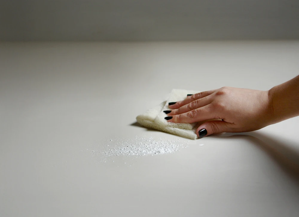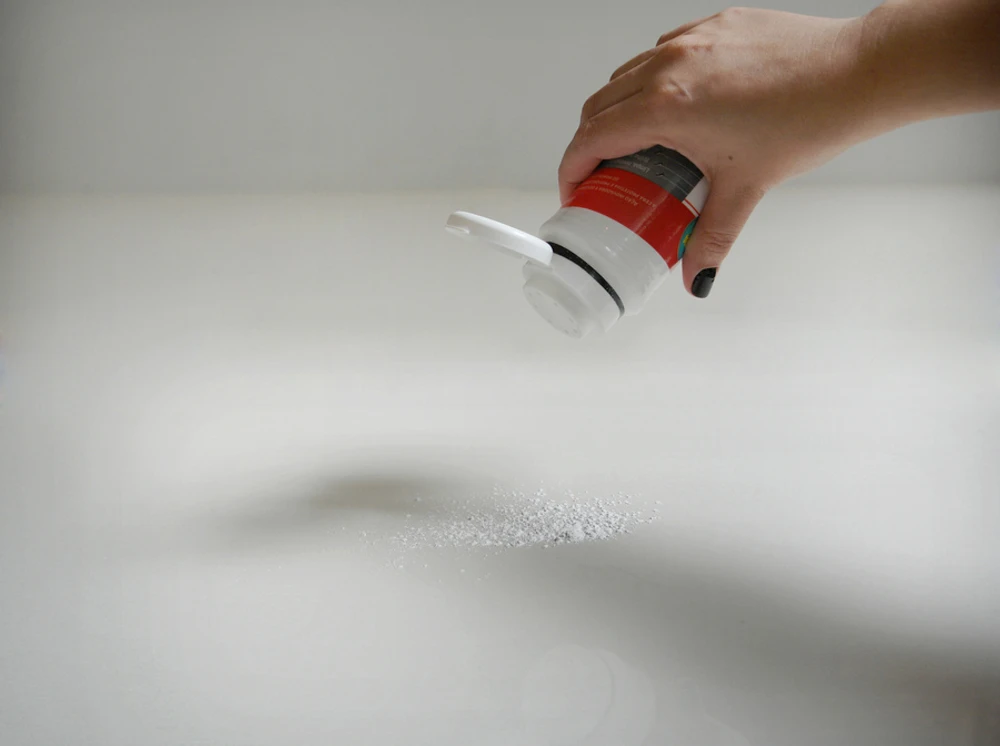 Adicione água ou produto indicado (ex: Bio7 ou Limpa Fácil) até formar uma pasta cremosa.