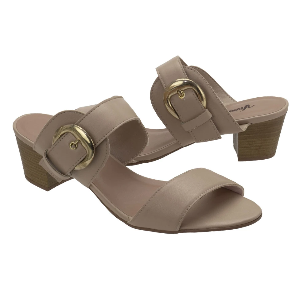 Tamanco em couro ecológico com sato de 9,5 cm de altura e solado em borracha antiderrapante. Extremanete confortável e leve.
