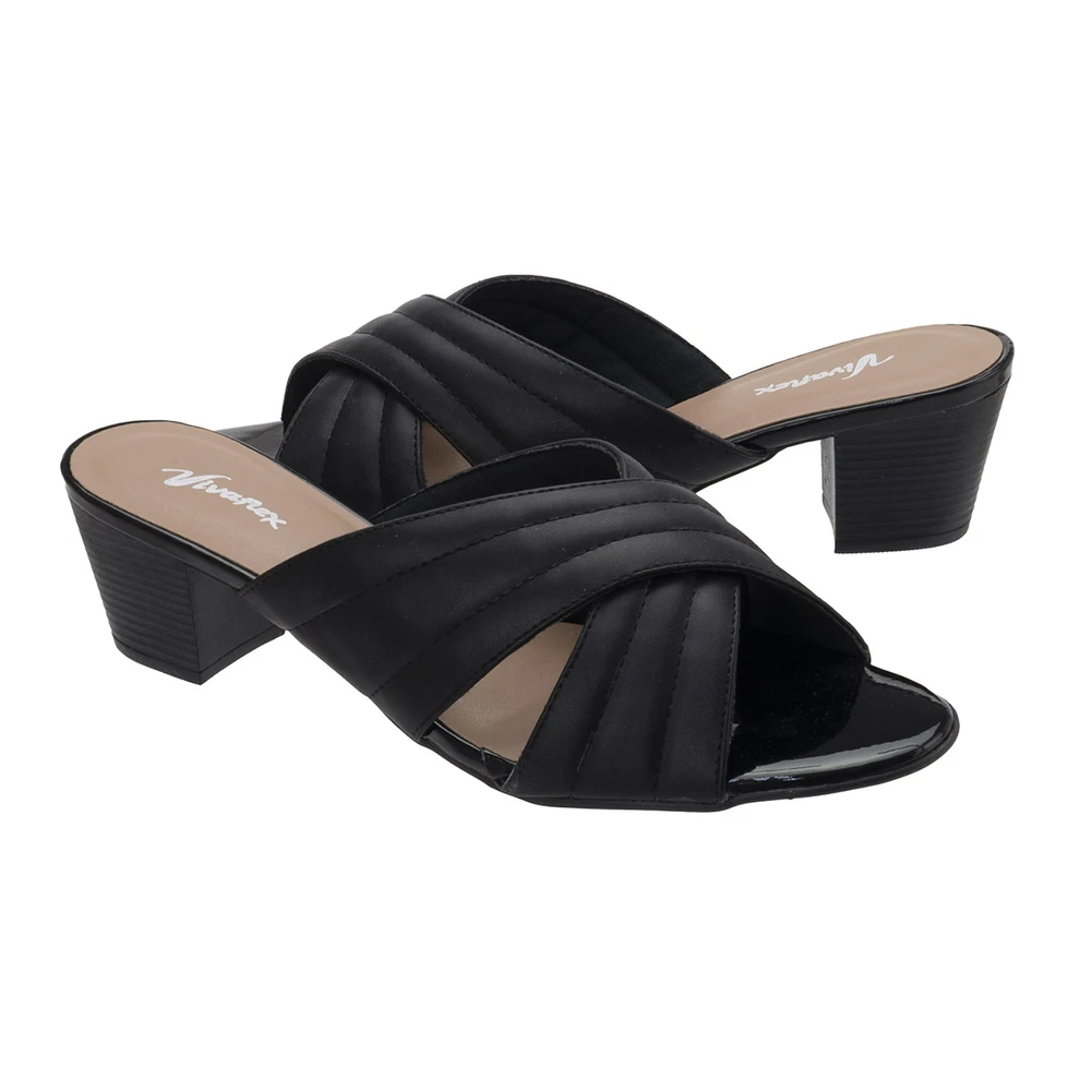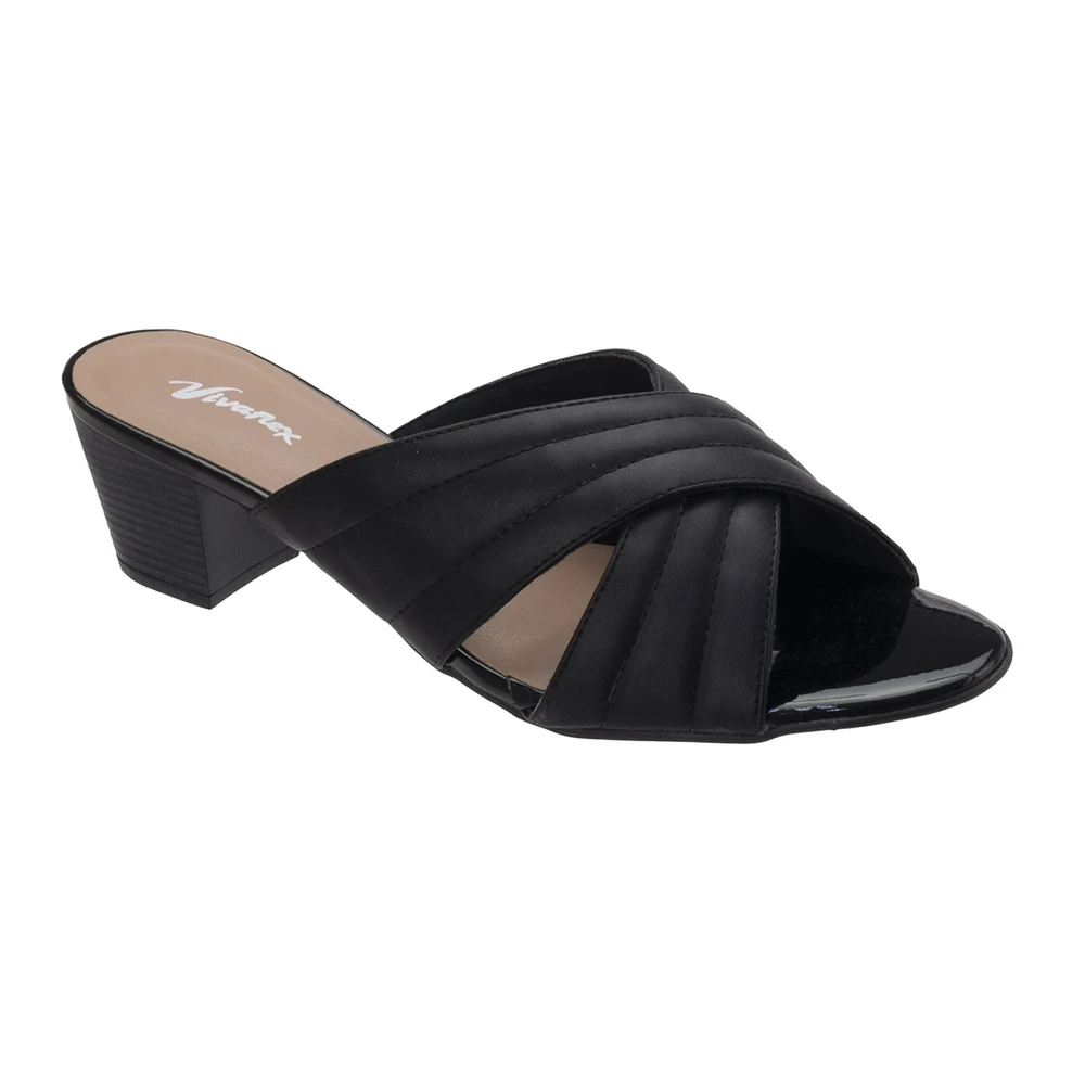 Tamanco em couro ecológico com sato de 9,5 cm de altura e solado em borracha antiderrapante. Extremanete confortável e leve.