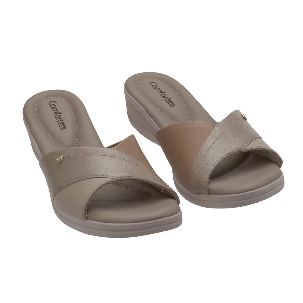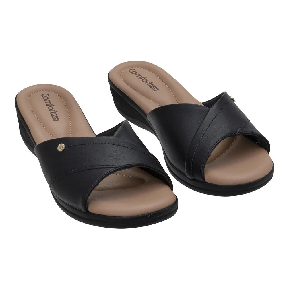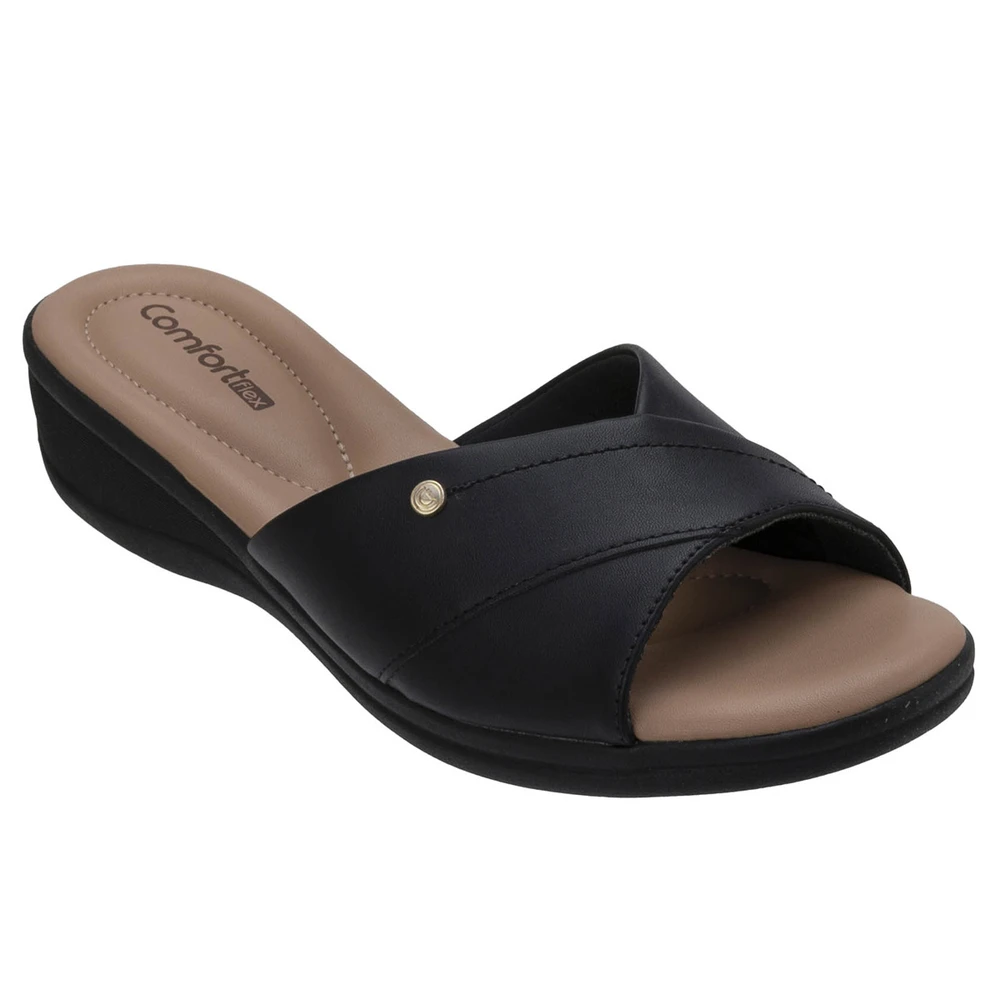 Confeccionada em napa de alta qualidade, conta com uma tira larga na parte frontal garante firmeza e praticidade no calce. Seu salto de 5,0 cm oferece altura ideal com segurança, e o solado com frisos antiderrapantes completa o conforto em cada passo.