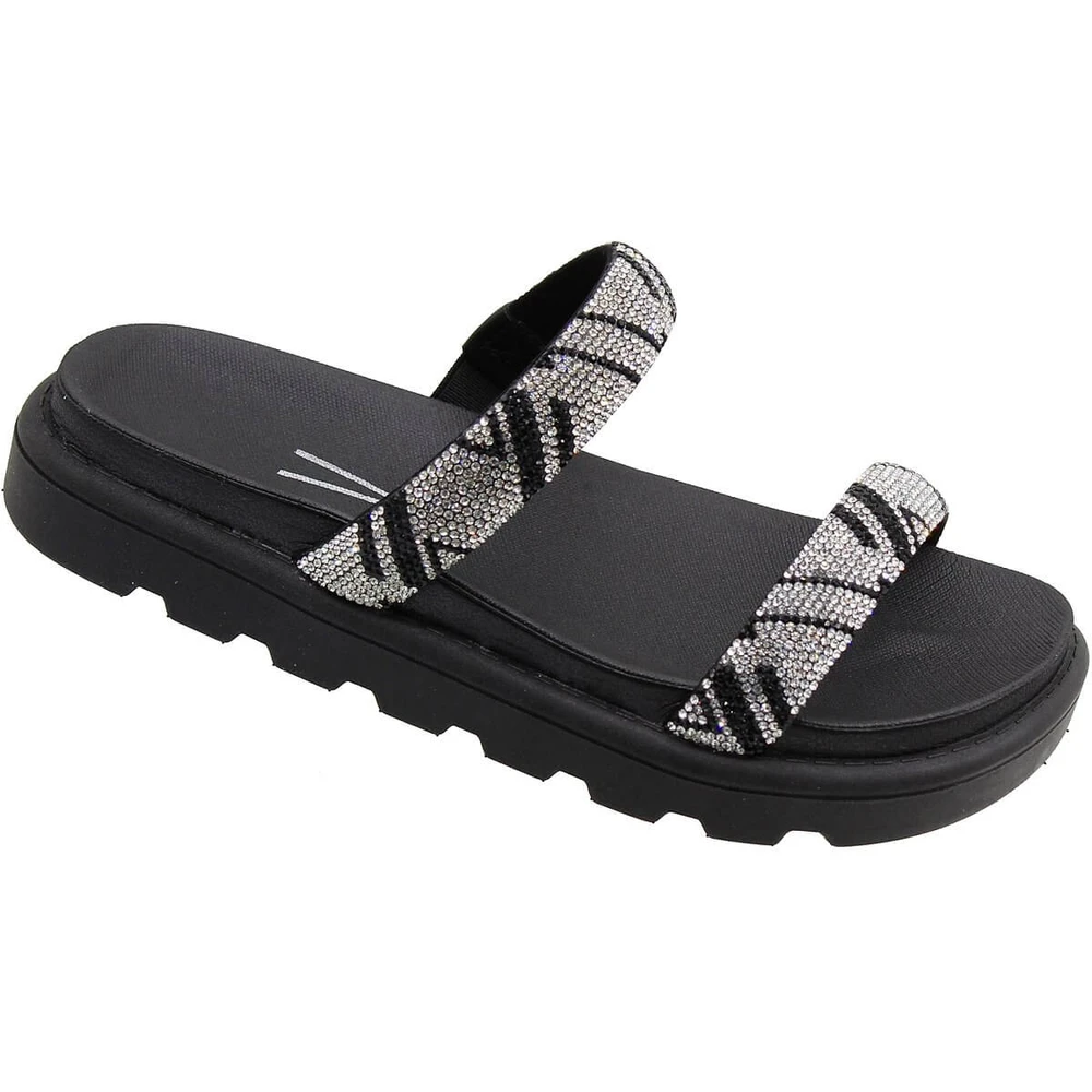 Tamanco Slide Vizzano Tiras Strass Plataforma Baixa Feminina