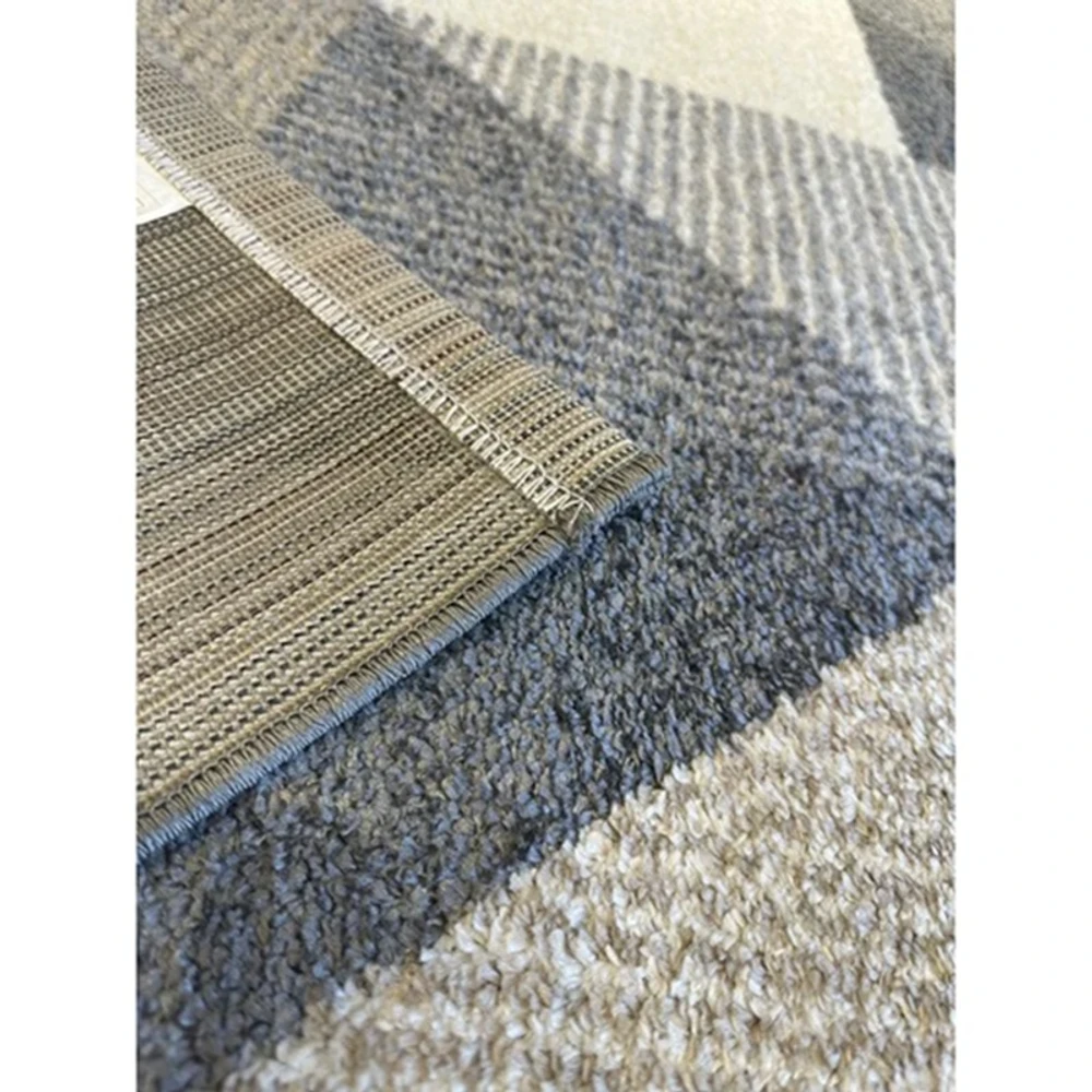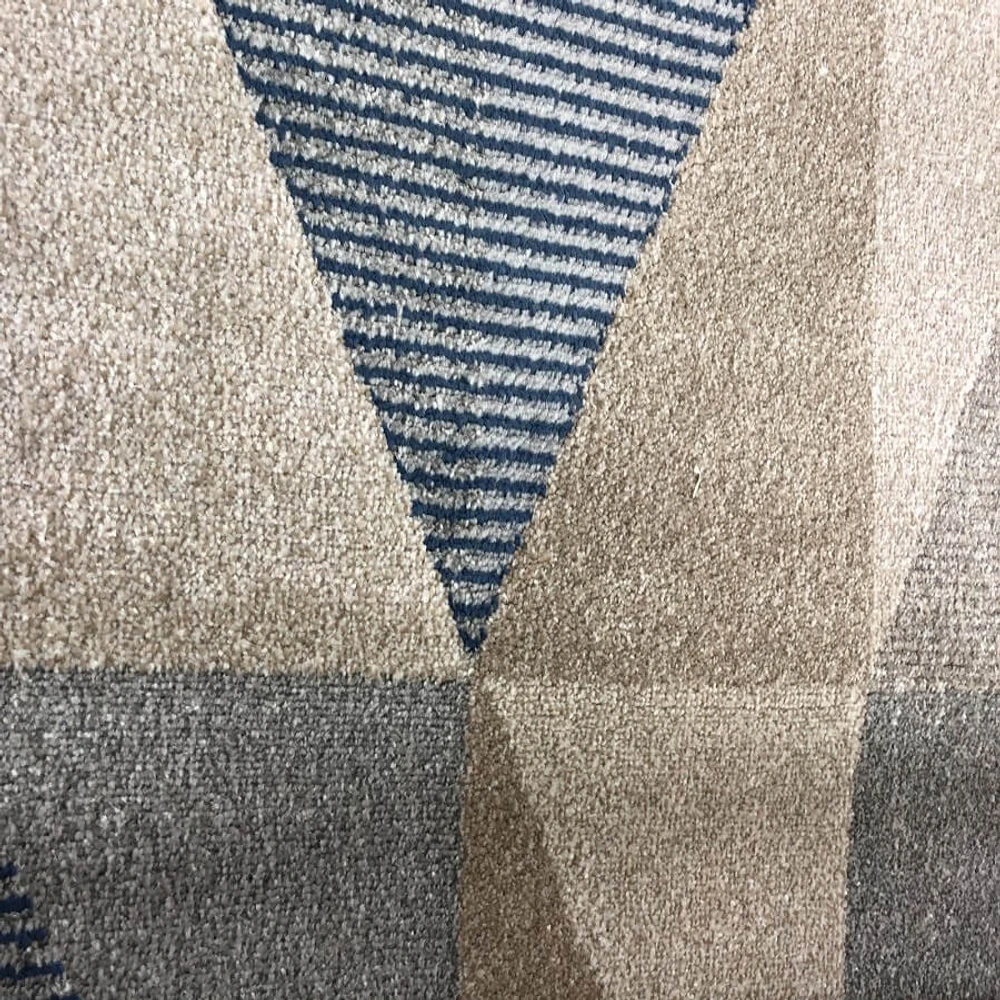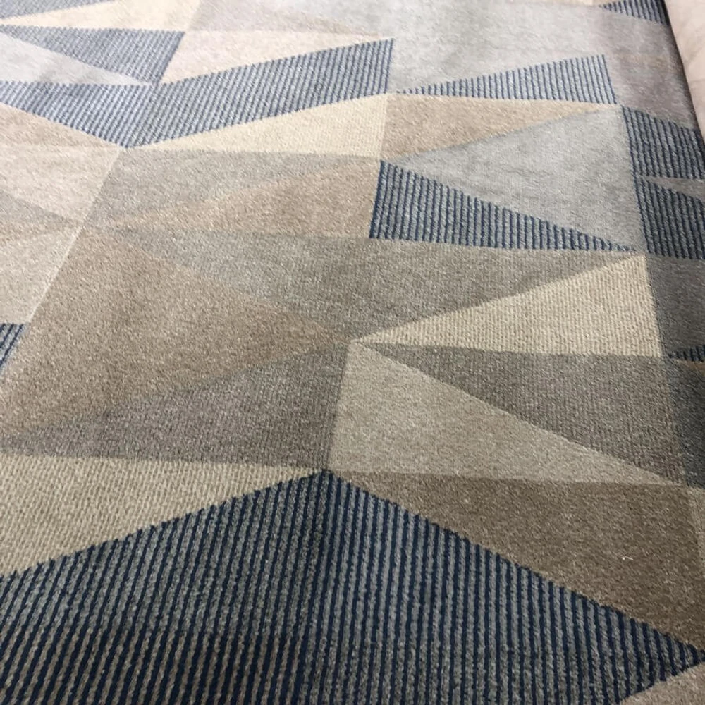 Transforme sua sala com este tapete de 2,50 x 3,00 m, que combina design geométrico contemporâneo com uma paleta sofisticada em tons de cinza, bege e azul. Ideal para ambientes modernos, oferece conforto ao caminhar e valoriza a decoração com elegância sutil.