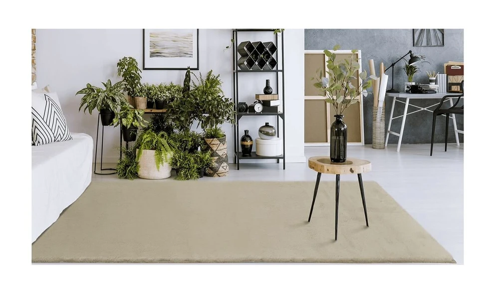 Aconchego é a melhor definição para esse tapete. Estilo pele de coelho, tem toque muito macio proporcionando conforto e a agradável sensação de satisfação. Confeccionado com 600 gramas por metro quadrado e base antiderrapante.